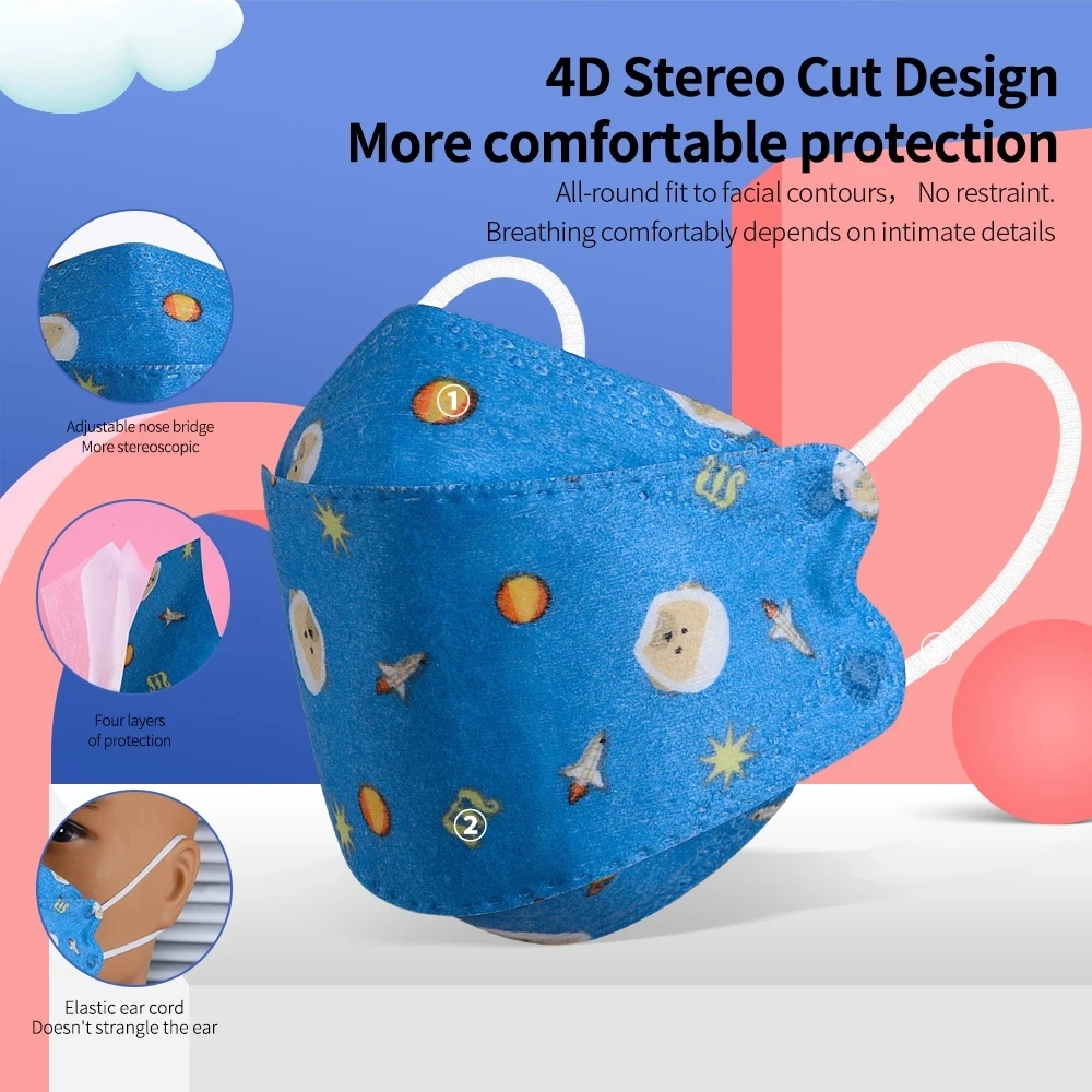 Мультяшная детская маска Ffp2 N95, респиратор Ffp2mask, 3d Корейская маска с принтом рыбы, 4 слоя, Детские пылезащитные маски, маски Kawaii KN95, маска для лица