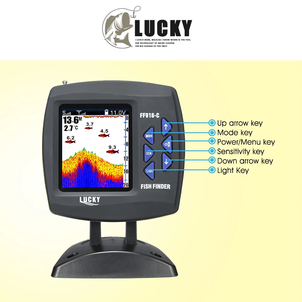 1) бесплатно: 3,5 英寸 MVA-TFT-LCD 2) 背光:开/关白色 светодиодный 3) 深度能力:328 英尺(100 米) 4) 声纳覆盖范围:45 度波束角,200 кГц 5) 无线操作范围:980 英尺(300 米) 6) 电源要求:11 到 13V DC 7) 水深,水温,鱼的位置,底部轮廓可以不断地从水中获取 8) 用户可选择的灵敏度,缩放,单位,深度范围,浅报警,鱼图标,鱼报警,和海图速度设置 9) 当探鱼器关闭时,内置内存可存储声纳设置 10) 工作温度:14 °F 至 122 °F (до 10 лет °C Выдерживает 50 °C)
