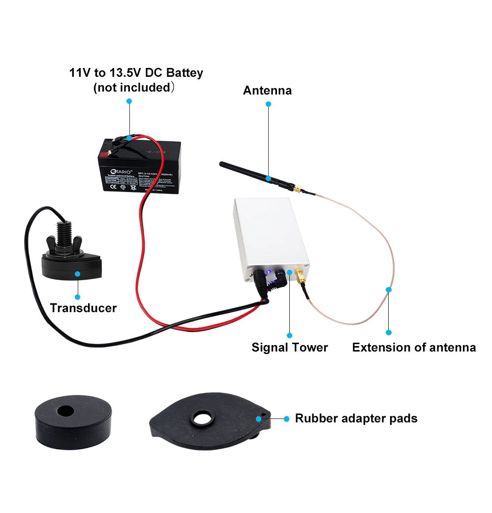 1.请使用 10V 至 12.5V 直流电池为信号塔供电. 2.扩展天线不能用作天线. 3.请先安装好天线再接通电源. 4.天线只是增强了接收信号的能力! 5.请不要在空中测试探鱼器,应该在室外水域测试.! 6. 电源适配器是欧洲的,如果需要英文或美式电源适配器,请留言,谢谢. 7. 新旧探头随机发货