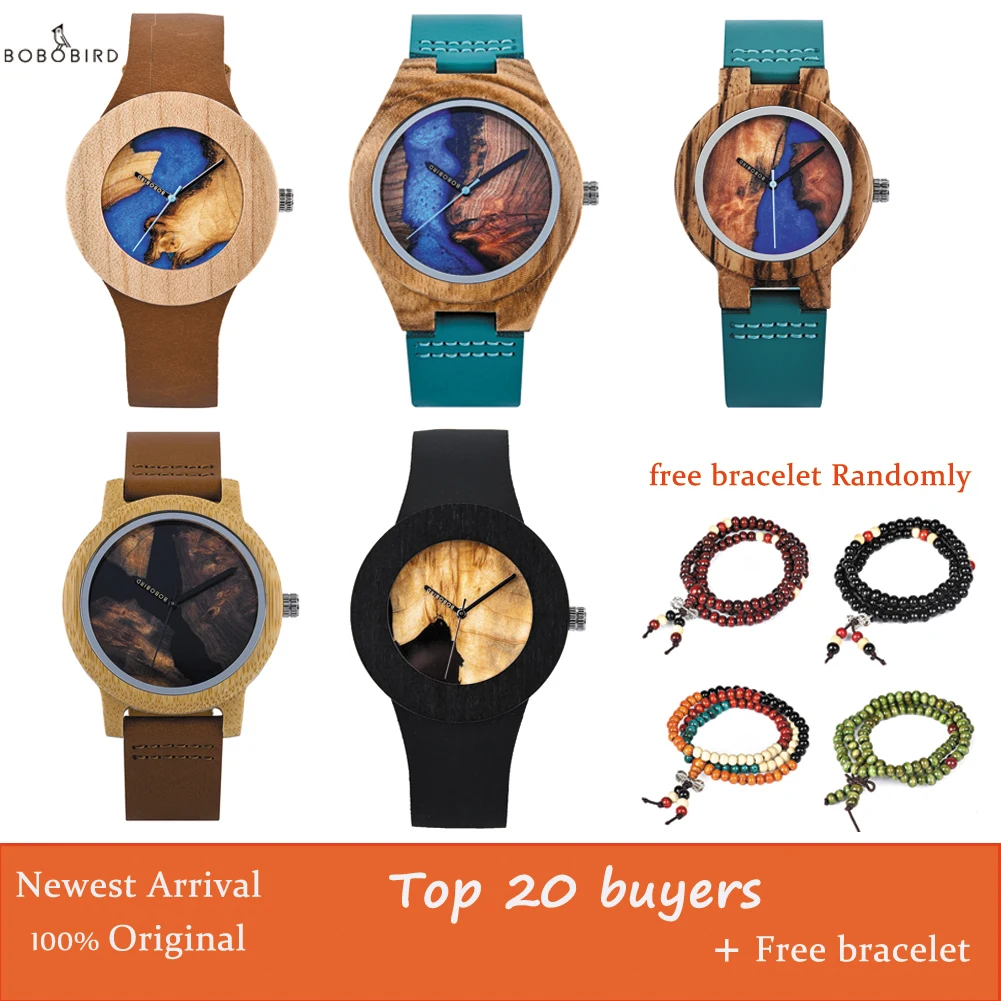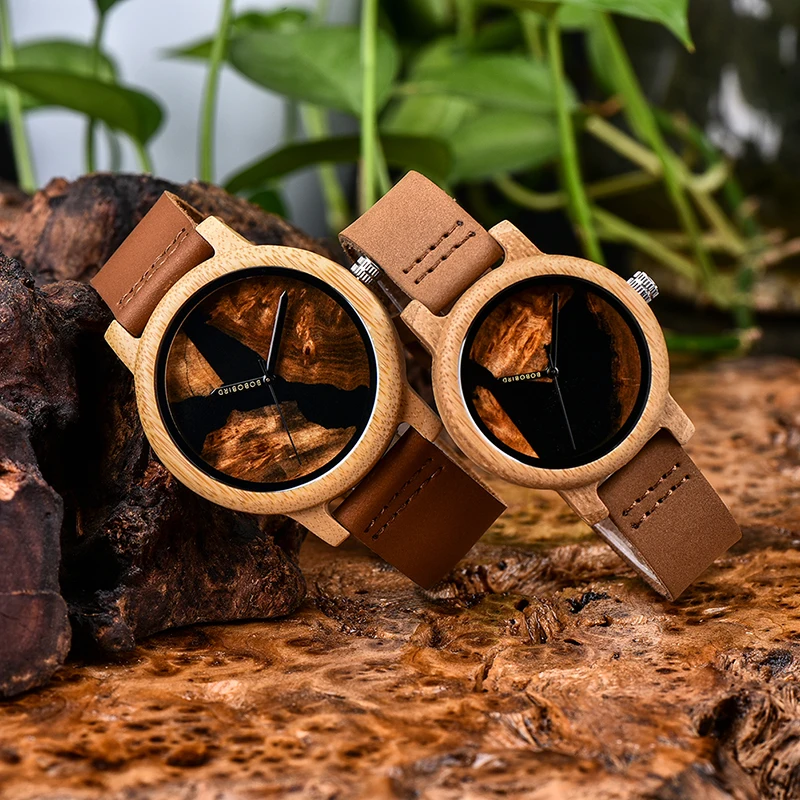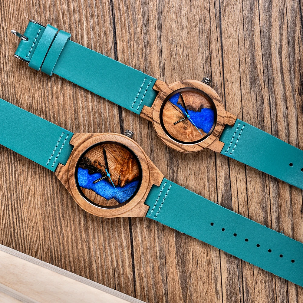 Нежный парные кварцевые часы туя дерева с голубым полимерным камнем наручные Для мужчин женские часы коллекции персональный подарок BOBOBIRD