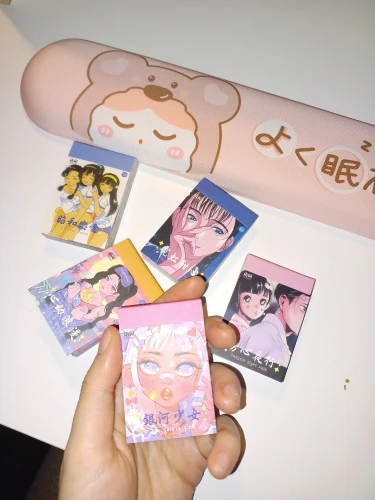 Хорошая книга наклеек с 50 различными изображениями аниме-девочек. Дизайн стикеров красивый и соответствует тематике. Хотя дизайн приятный, наклейки имеют необычное покрытие, это своего рода полублеск, который выглядит и выглядит текстурированным, он матовый с посыпкой блеска, и он по-разному отражает свет на различных областях индивидуальной наклейки. Я думаю, что это характеристика производителя, так как все одинаковые марки имеют это странное покрытие, поэтому, Я думаю, что производитель Yuxian не имеет лучшего качества по сравнению с книгами-наклейками, сделанными конфетными стихами (что делает очень красивые альбомные книги-наклейки естественного типа вещей).