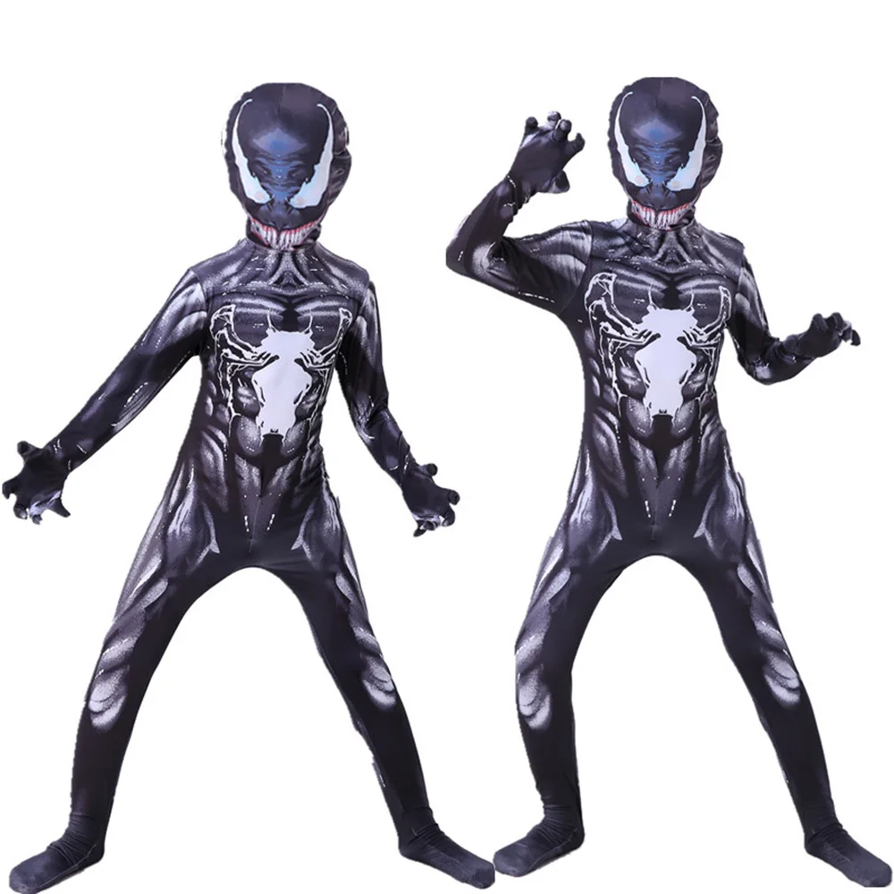 Хэллоуин Аниме Веном прикрепленная Маска Костюм Косплей для взрослых и детей черный замок день рождения паук платье-боди