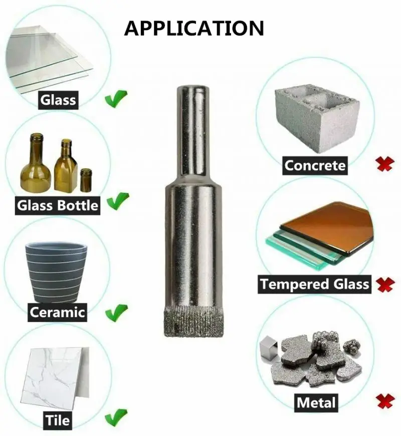 В комплект входят 10 различных размеров, которые отвечают различным требованиям. Идеально подходит для сверления стекла, плиточных бутылок, банок для блоков, керамической плитки из стекловолокна, кирпича и камня.