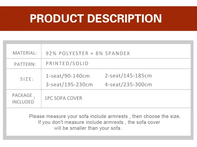 1. Продукт-это только чехол для дивана, не включая чехол для подушки.