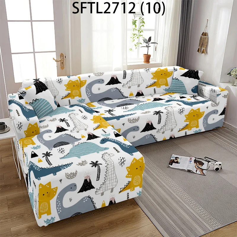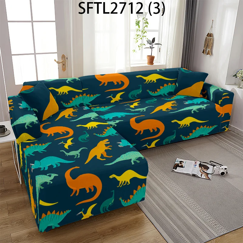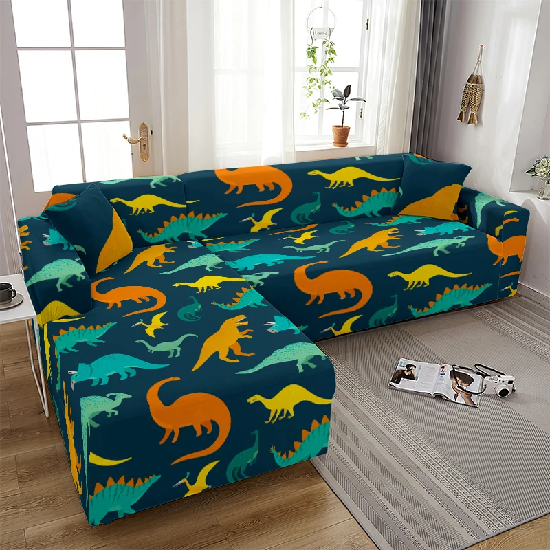 Эластичный чехол для дивана, регулируемый секционный чехол для гостиной с принтом динозавра, угловой диван