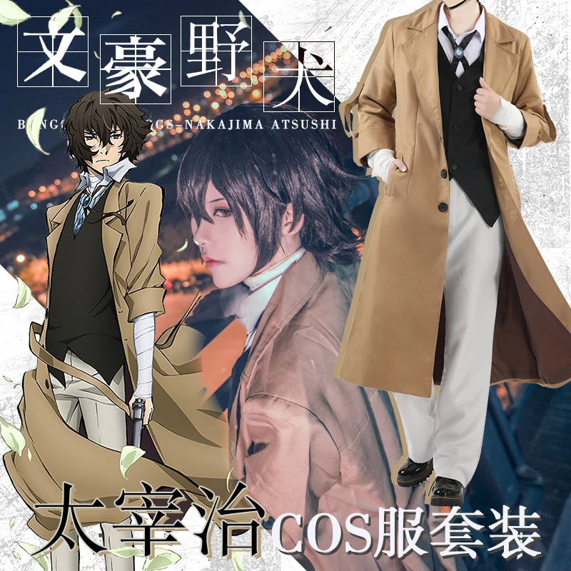 Костюм для косплея Осаму дадзай из аниме бродячие псы, пальто-Тренч на Хэллоуин, полный комплект