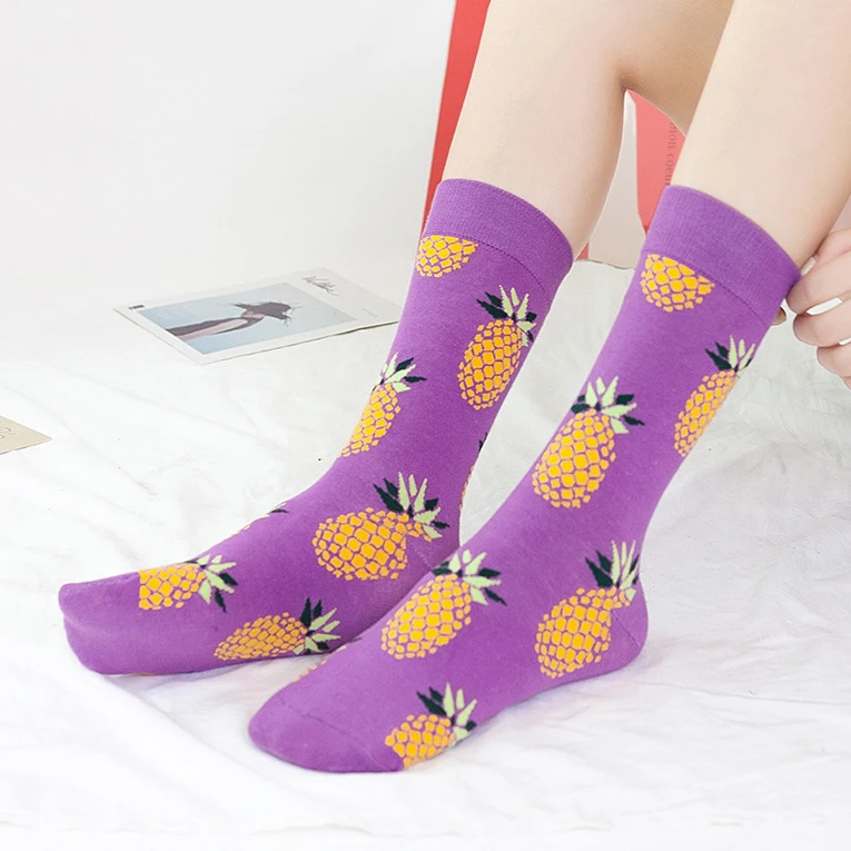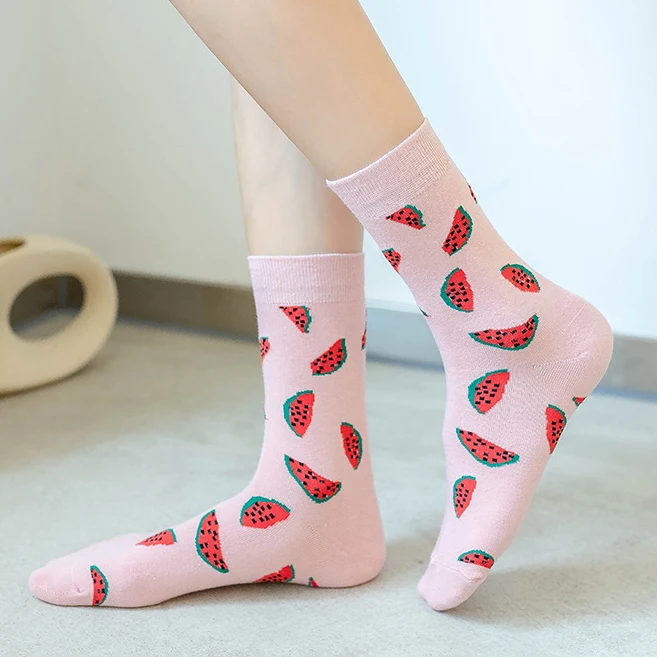 Чулки женские в виде фруктов, женские носки средней длины, Красочны...