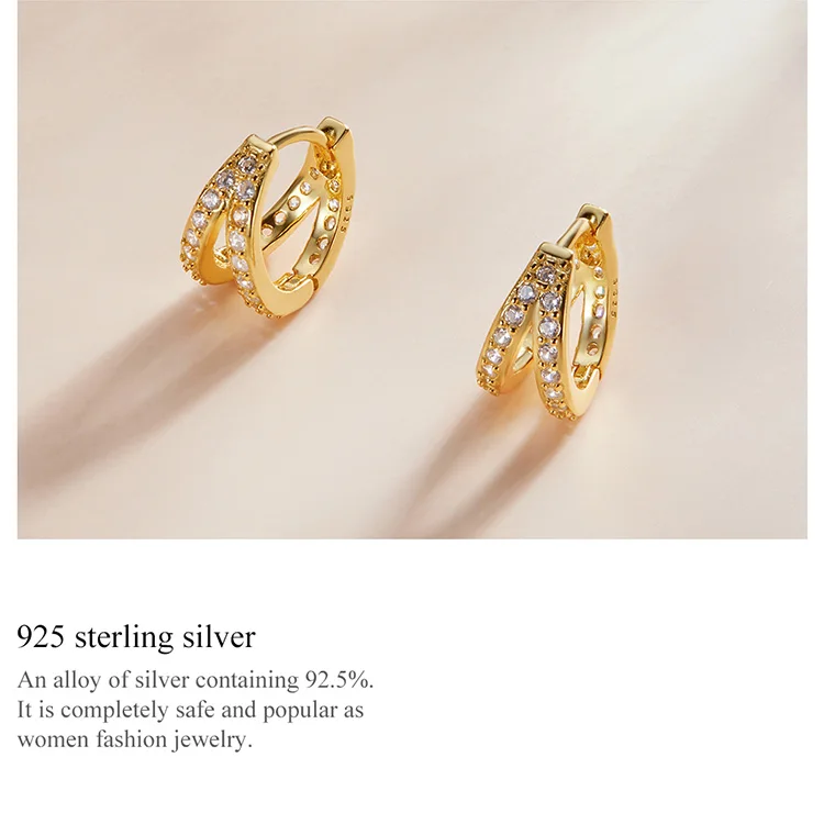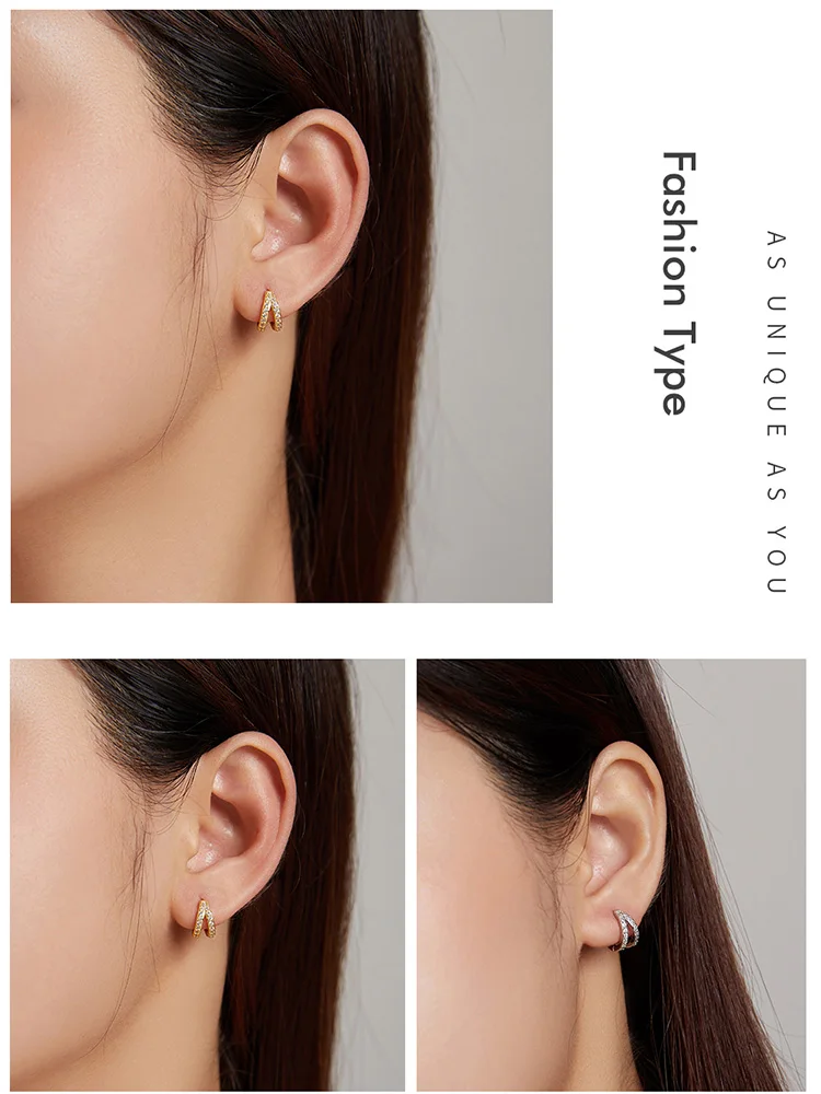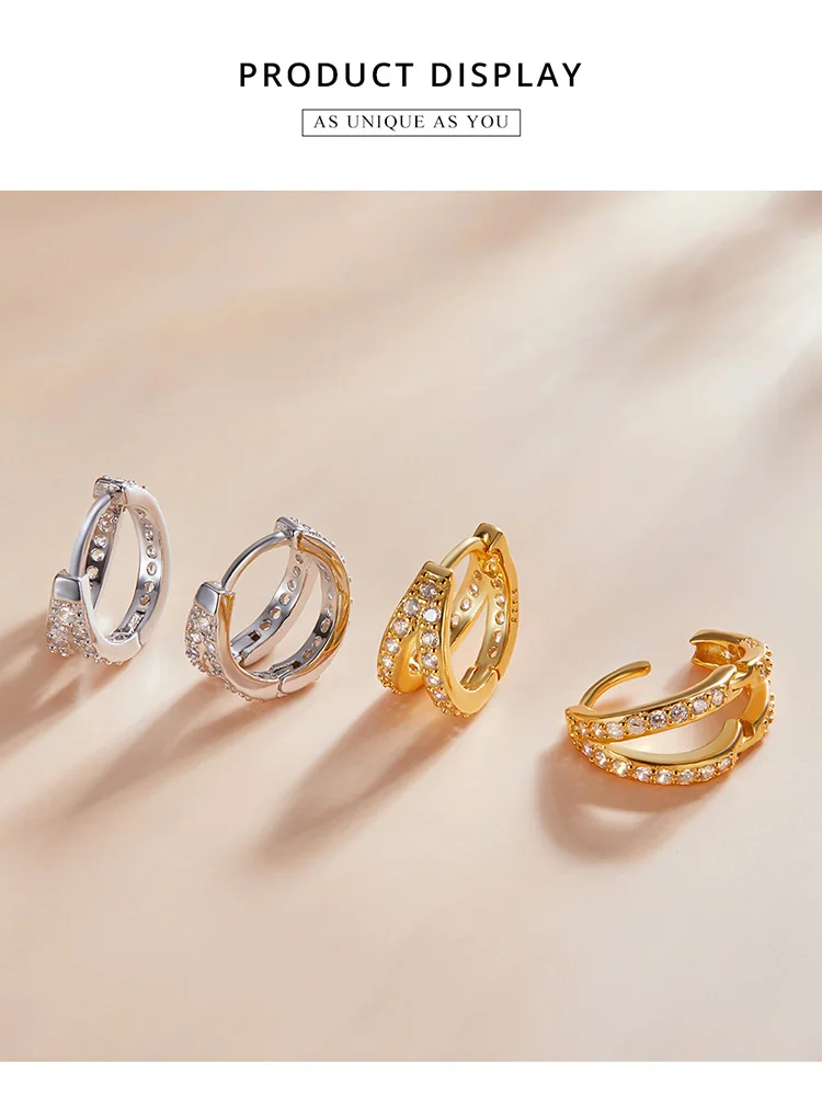 Bamoer, испанское серебро 925 пробы, современный стильный Кристалл циркония, двойные кольца, серьги с застежкой, обруч для женщин, свадебные, SCE1187