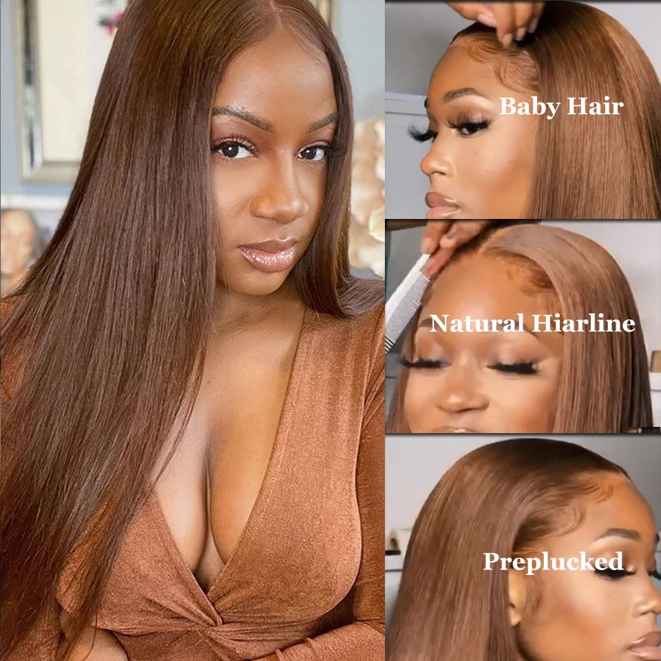 Siyun Show шоколадно-коричневый прямой парик на сетке спереди, плот...