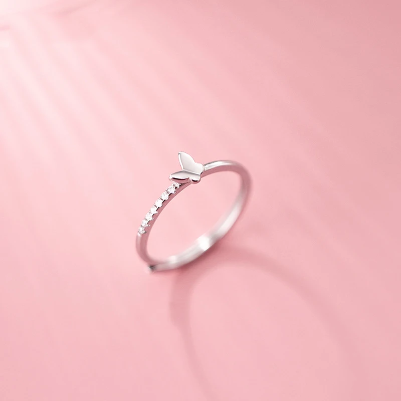 Женское регулируемое кольцо с бабочкой из серебра 925 пробы
