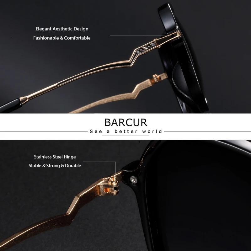 BARCUR Роскошные брендовые поляризованные женские очки от солнца со...