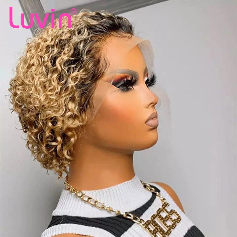 Luvin 6 8 дюймов короткий кудрявый парик из Куси с Бобом парики из натуральных волос бразильские волосы Remy Предварительно собранные человеческие волосы с волосами младенца для женщин
