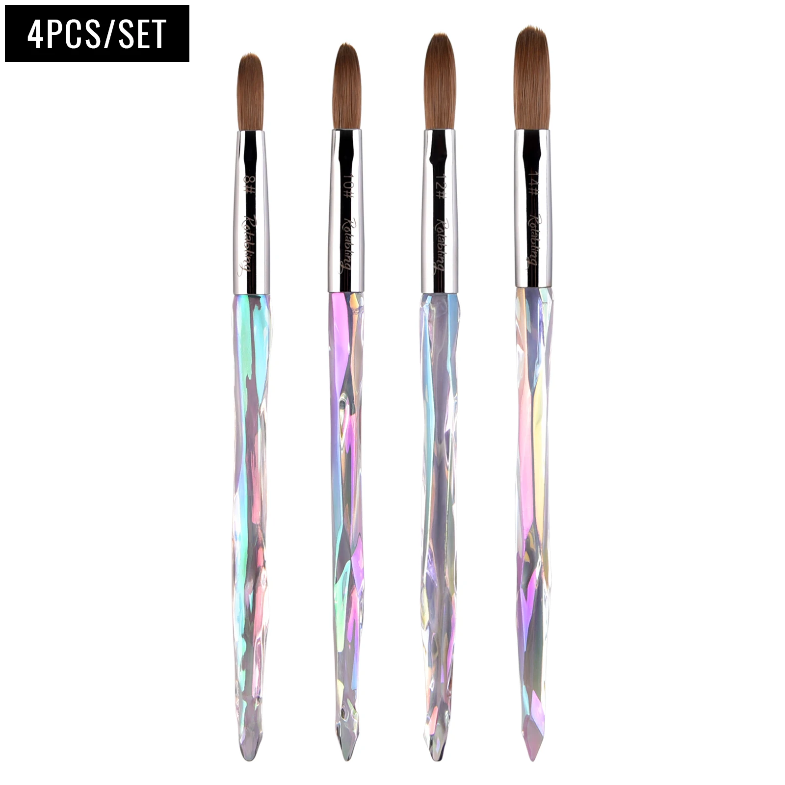 Акриловая кисть для ногтей Kolinsky, соболиный гель, маникюр, рисование, набор кистей для дизайна ногтей, 4 шт., Размер 8 10 12 14, профессиональная ручка для рисования