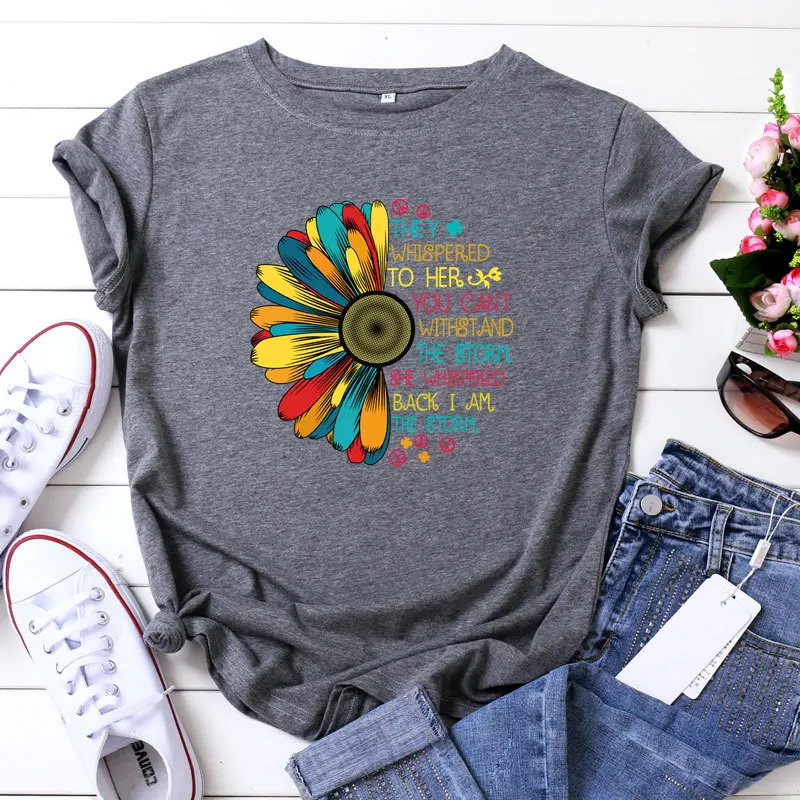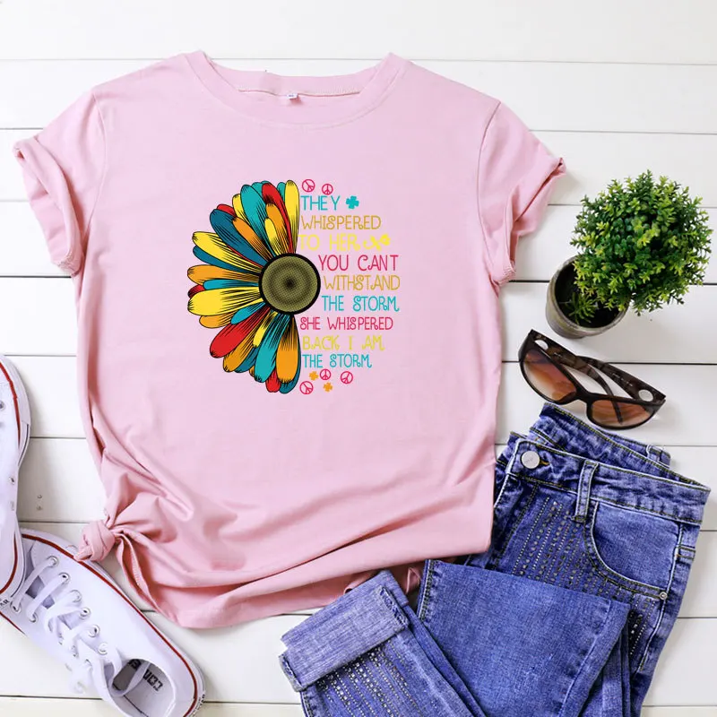 Женская футболка с круглым вырезом, коротким рукавом и надписью Подсолнух