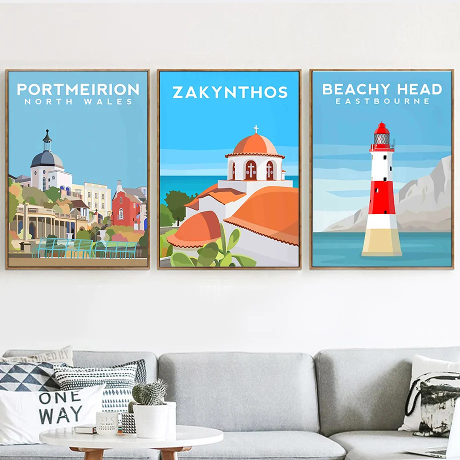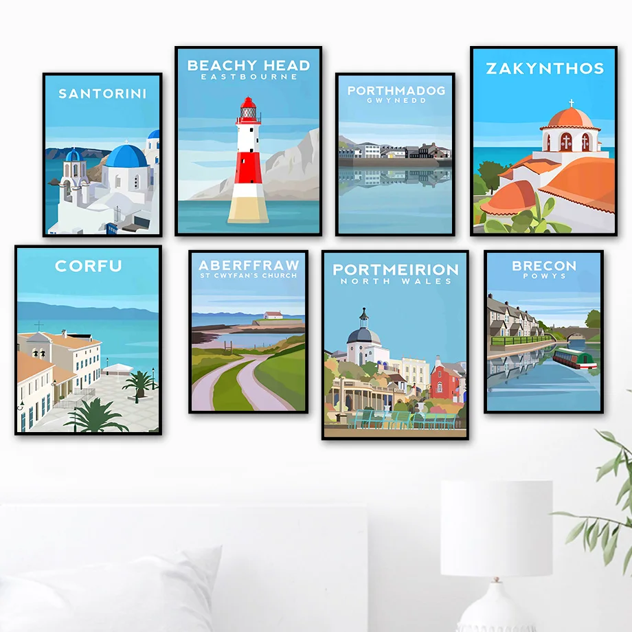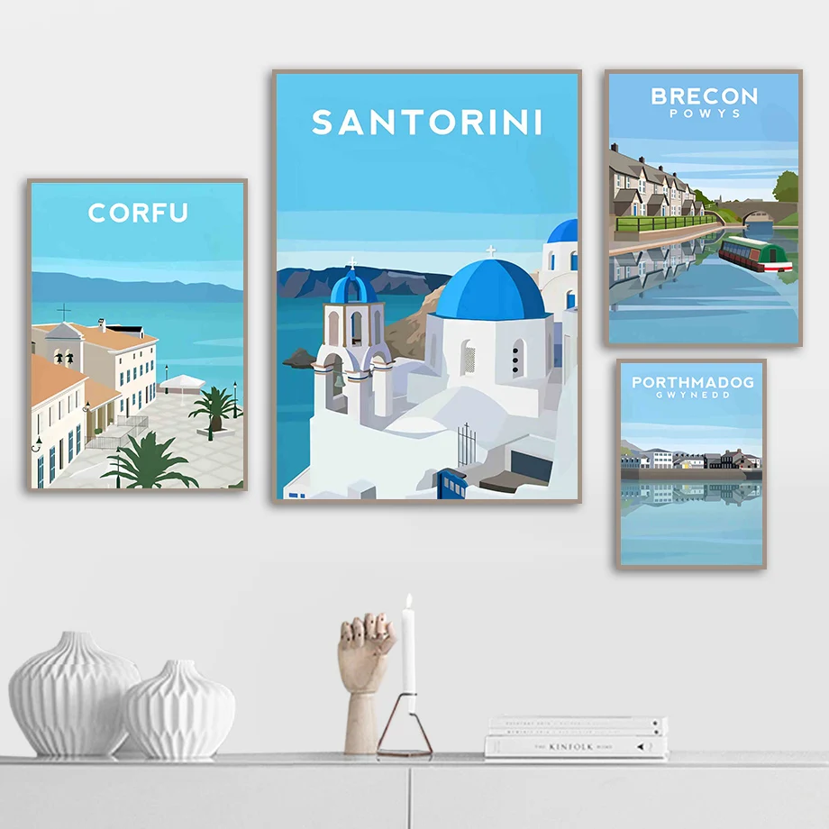 Настенная картина на холсте, скандинавский постер с изображением скандинавских гор, морского неба, острова, Санторини, Корфу, декор для гостиной