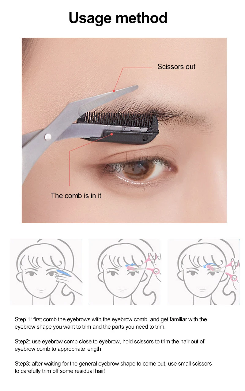 Особенности: поставляется с небольшой расческой, чтобы помочь расчесать грязные брови; Хорошо кусать, легко резать маленькие и грязные брови.