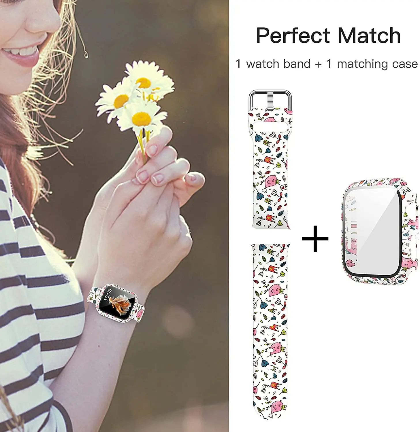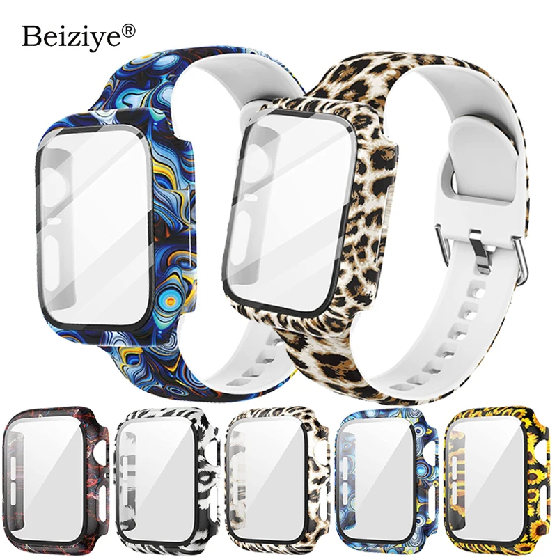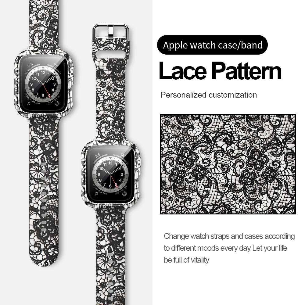 Защитный чехол + ремешок с рисунком для ремешка Apple Watch 42 мм, 38 мм, 40 мм, 44 мм, силиконовый ремешок для часов iWatch Series 6 SE 5, 4, 3, 2
