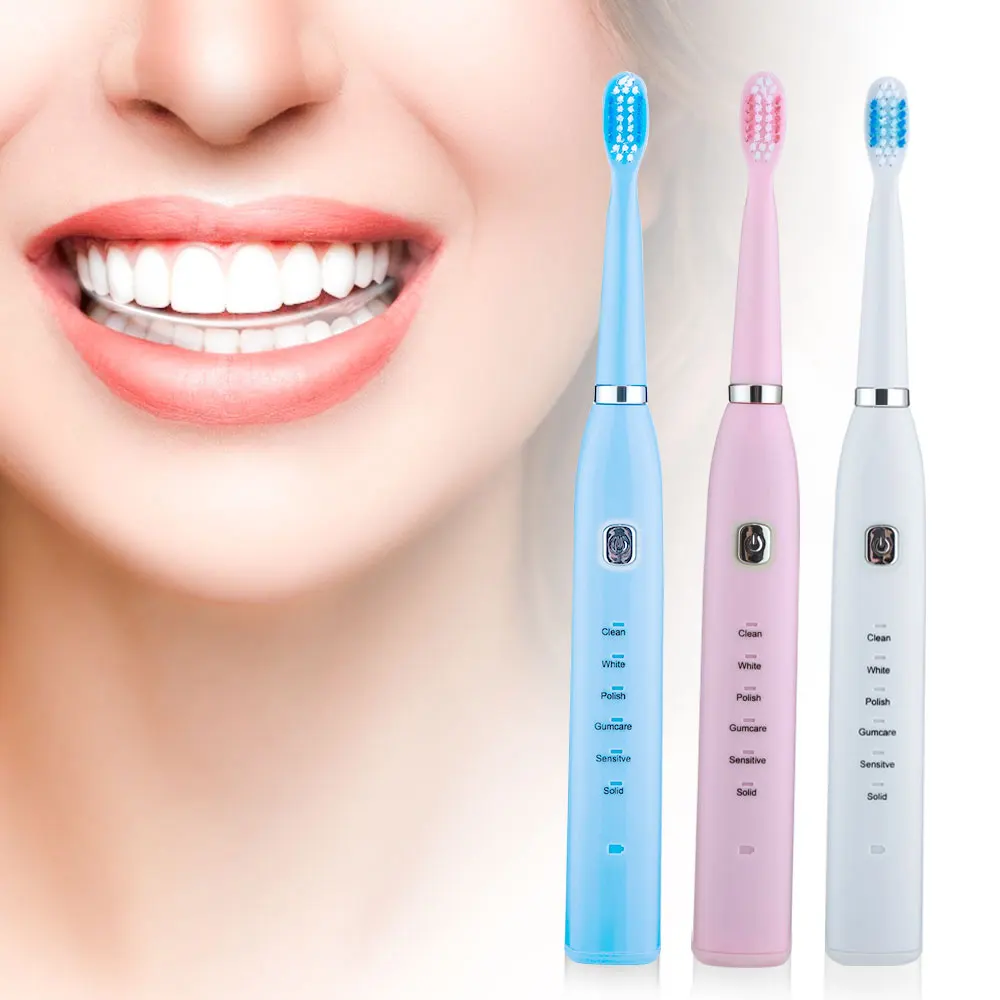 Ультразвуковая электрическая зубная щетка, для взрослых и детей, 6 режимов, IPX7, перезаряжаемая через USB
