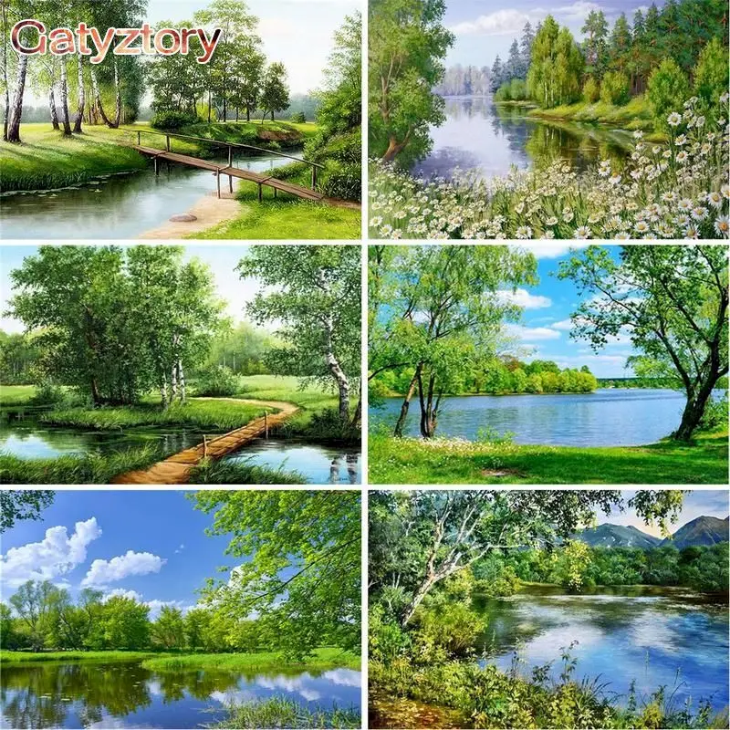 GATYZTORY Раскрашивание по номерам для взрослых и детей ручная роспись масляная живопись пейзаж картина для украшения дома пользовательский подарок