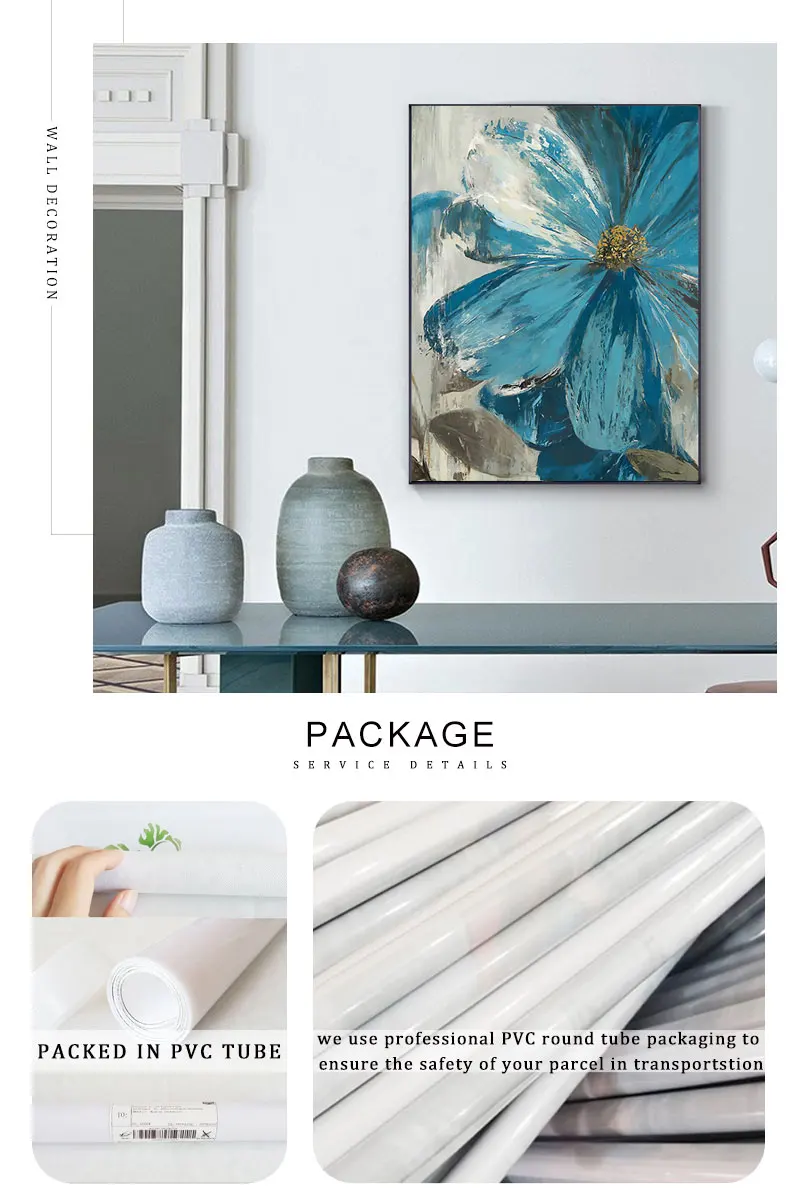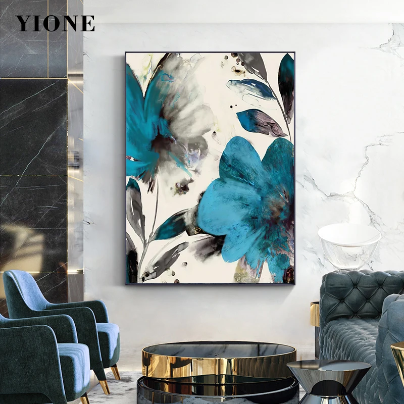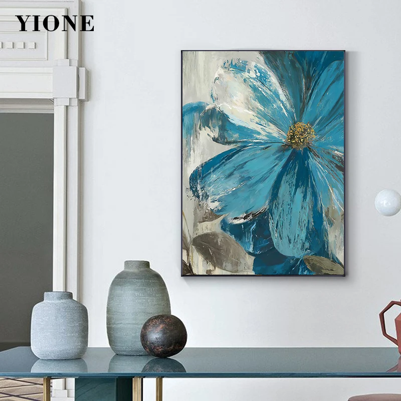 Винтажная картина маслом Синие Серые цветы абстрактные растения Холст Плакаты и принты Настенная картина для гостиной спальни Декор