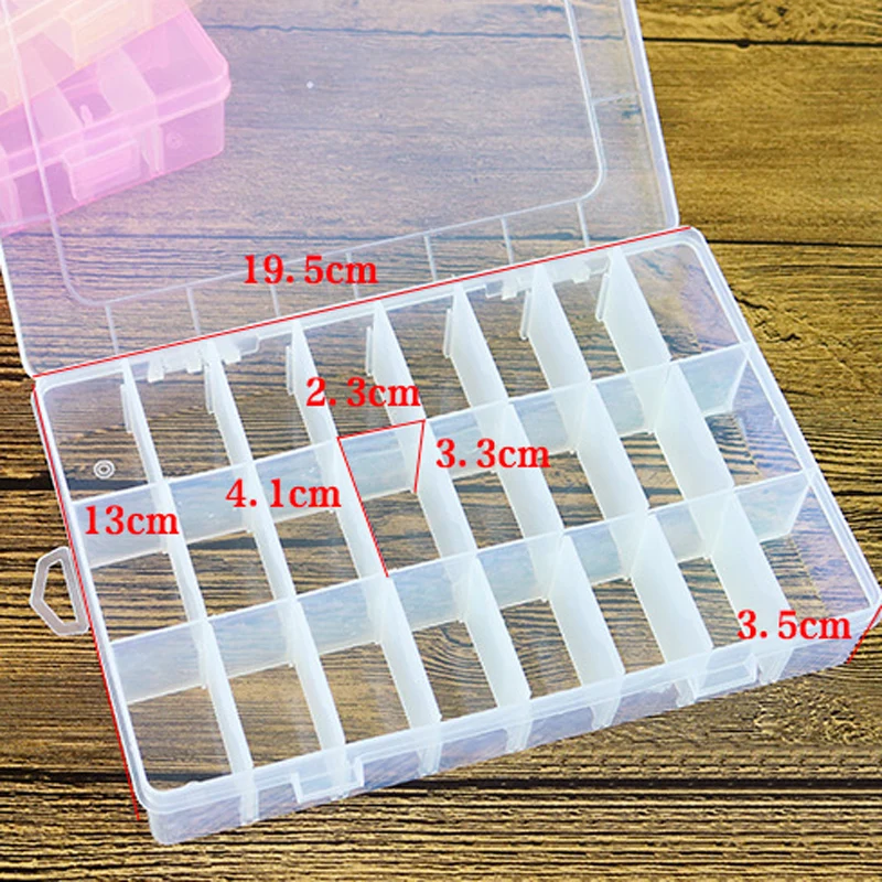 15 отделений: 17,3*10*2,3 см, размер каждой сетки: 3,5*3*2 см (прибл.)