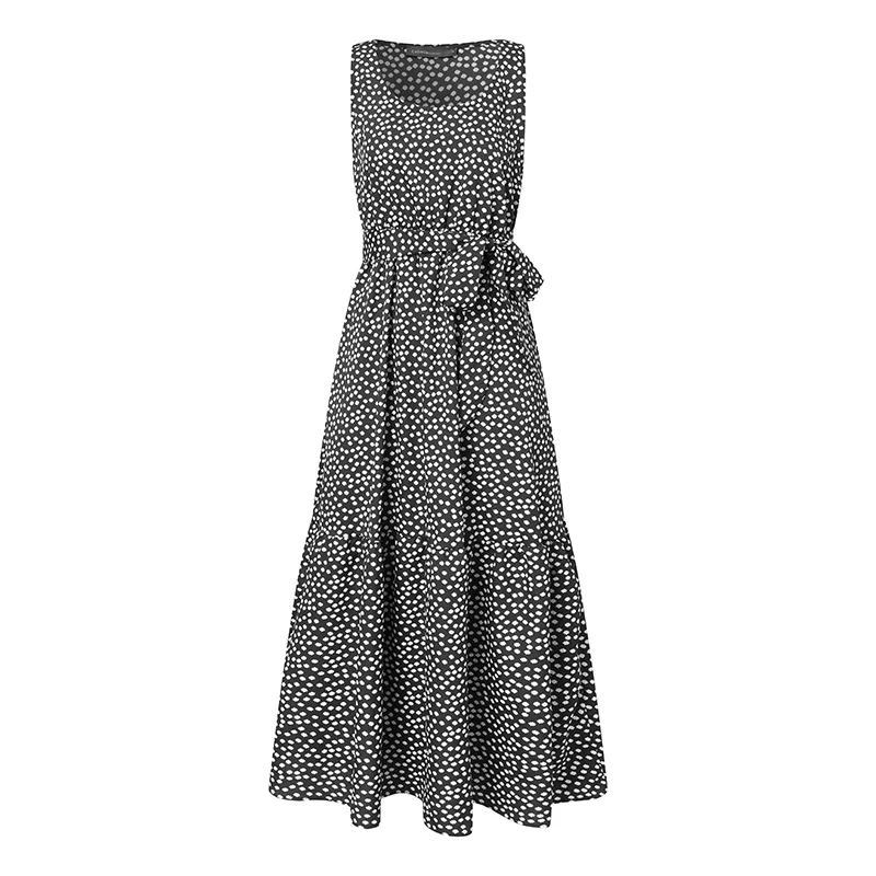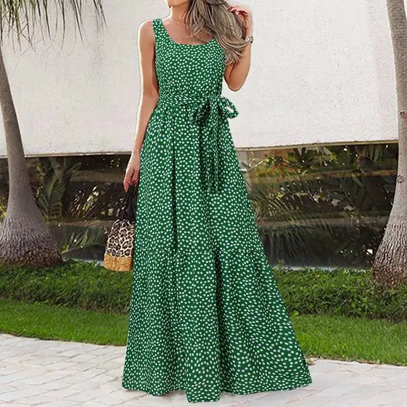 Женское длинное платье с цветочным принтом, летнее элегантное платье макси с плиссированным подолом, без рукавов, с поясом, 2021