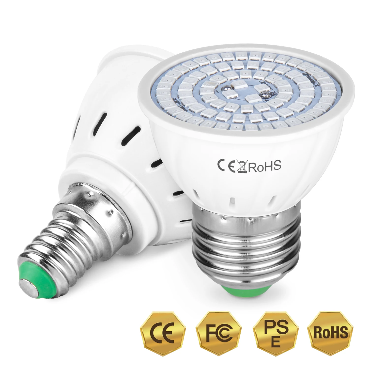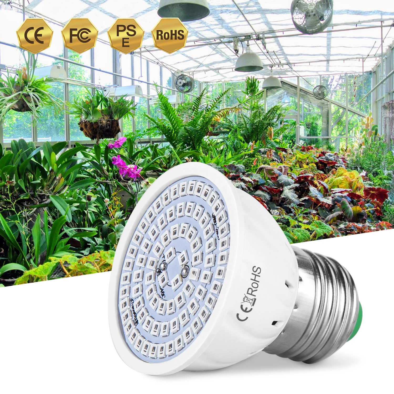 Фитолампа светодиодная полного спектра, SMD 2835, 48, 60, 80, s, E27, 220 В