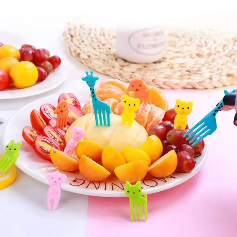 10 шт. пластиковые Мультяшные животные, еда, вилка для фруктов, Дет...