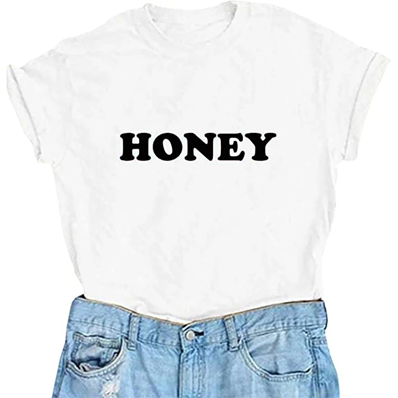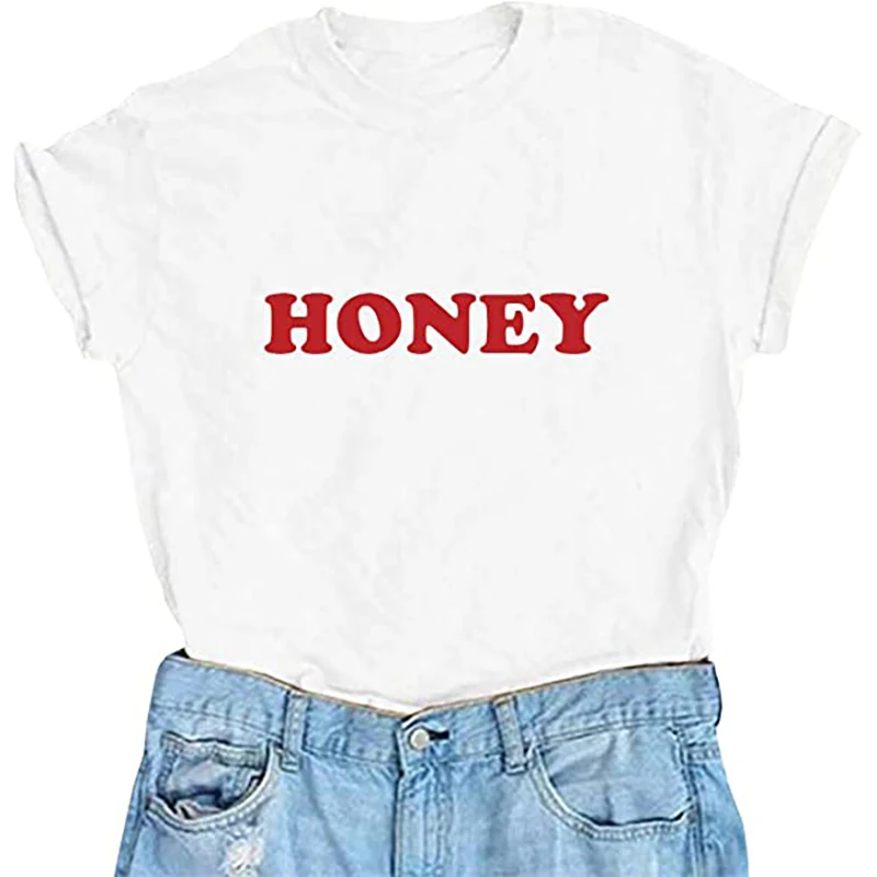 Женская футболка с коротким рукавом и надписью Honey, Повседневная футболка большого размера в стиле ретро, лето 2021