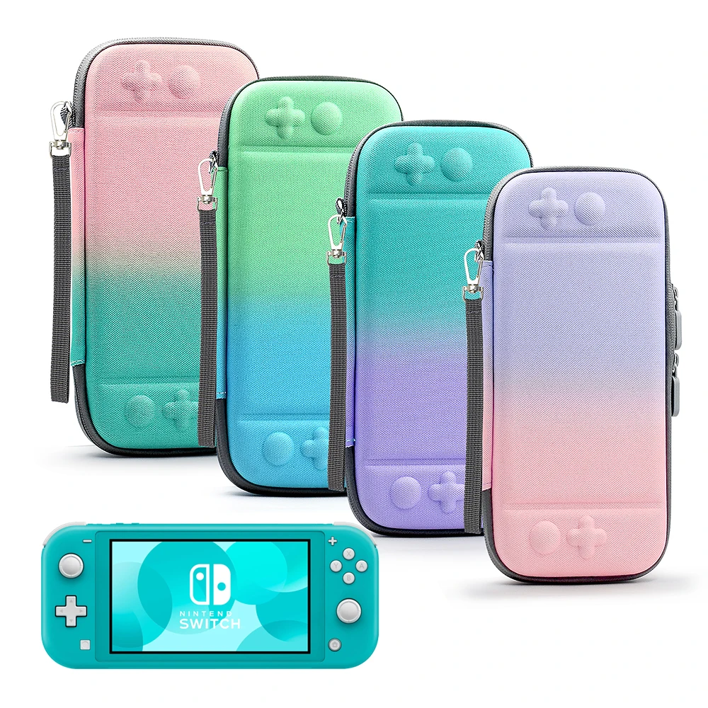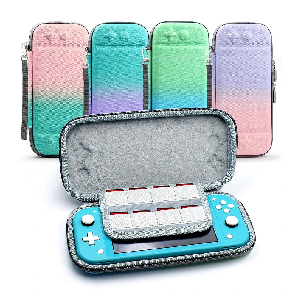 Выдающийся вид: градиентный цвет подарит ваш чехол Switch Lite выдающийся вид. И съемный ремешок позволяет удобно держать или носить.Всесторонняя защита: приятный для кожи жесткий чехол из искусственной кожи + EVA изготовлен из водонепроницаемых и износостойких материалов. Он может защитить Nintendo Switch Lite от случайного удара, падения и царапин. Карты легко.Высокое качество: внешний вид изготовлен из твердого материала корпуса с сильным сопротивлением сжатия, который может противостоять экструзии в ежедневном путешествии, а внутренняя часть мягкой подкладки может идеально защитить корпус переключателя. Не беспокойтесь о ударах, падениях и воде.Большая емкость: 10 игровых карт для использования внутри, и внутри есть жесткий держатель1 * сумка для хранения для Nintendo Switch Lite