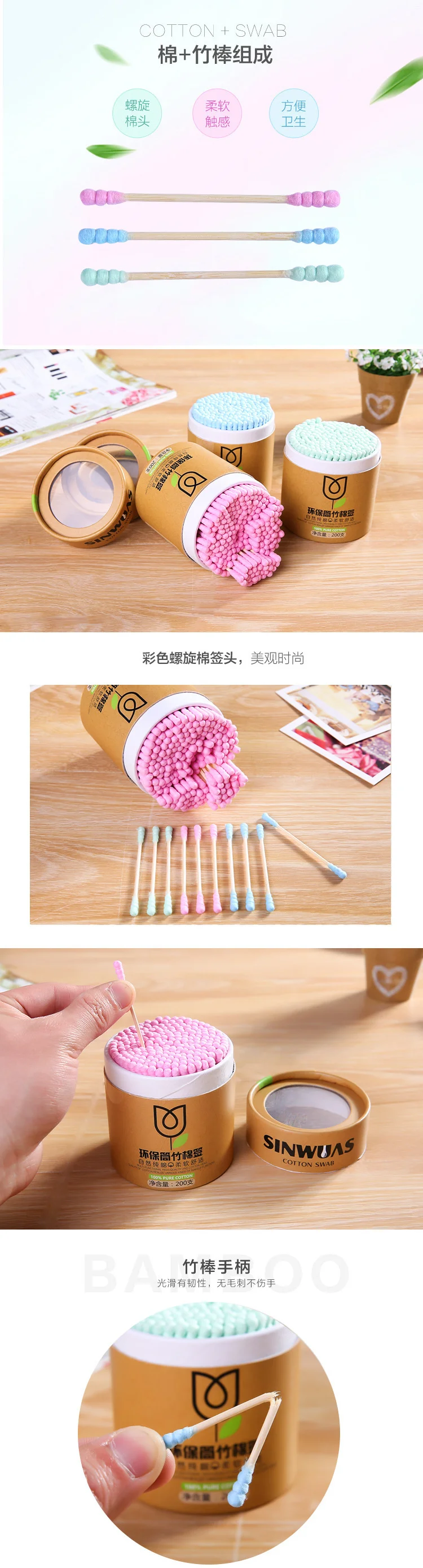 Детские ватные палочки 200 шт.кор. деревянные бамбуковые палочки, мягкие ватные палочки, тампоны для чистки ушей, хлопковые палочки, палочки для красоты здоровья