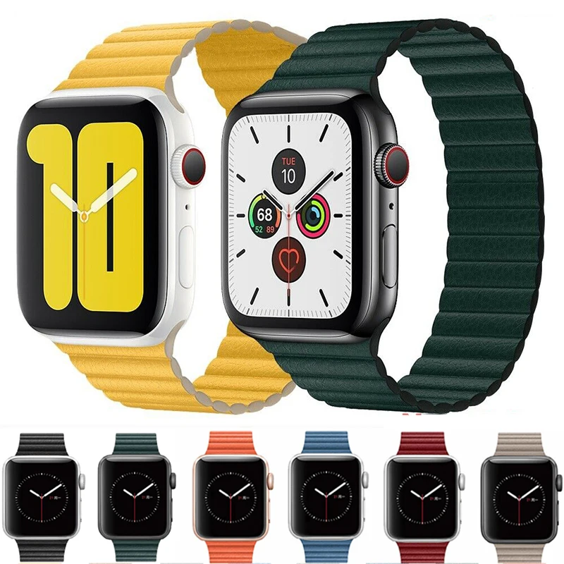 Кожаный ремешок для Apple Watch 44 мм 40 мм 38 мм 42 мм магнитный р...