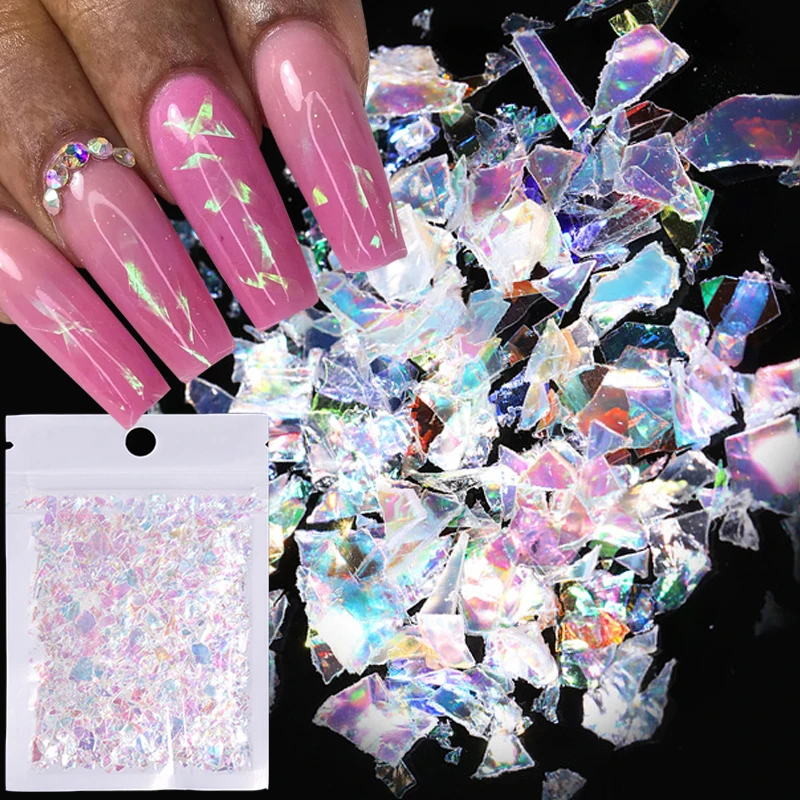 1 упаковка, красочные Блестящие Блестки для ногтей, голографическая стеклянная бумага, нерегулярные блестящие хлопья, 3D Типсы для дизайна ногтей, аксессуары для украшения