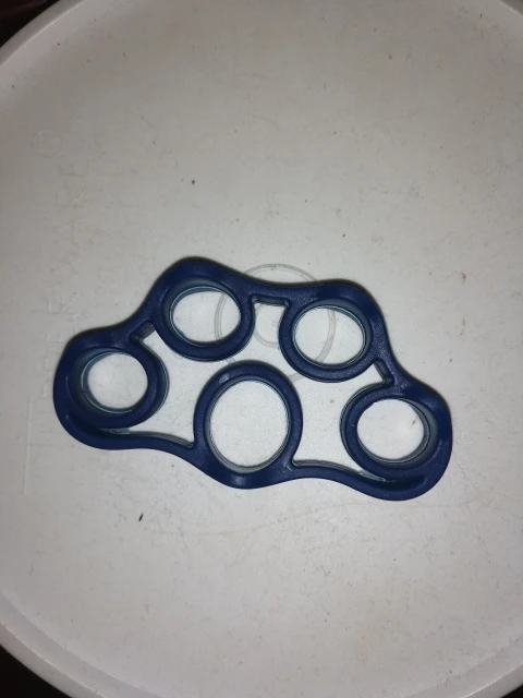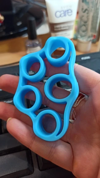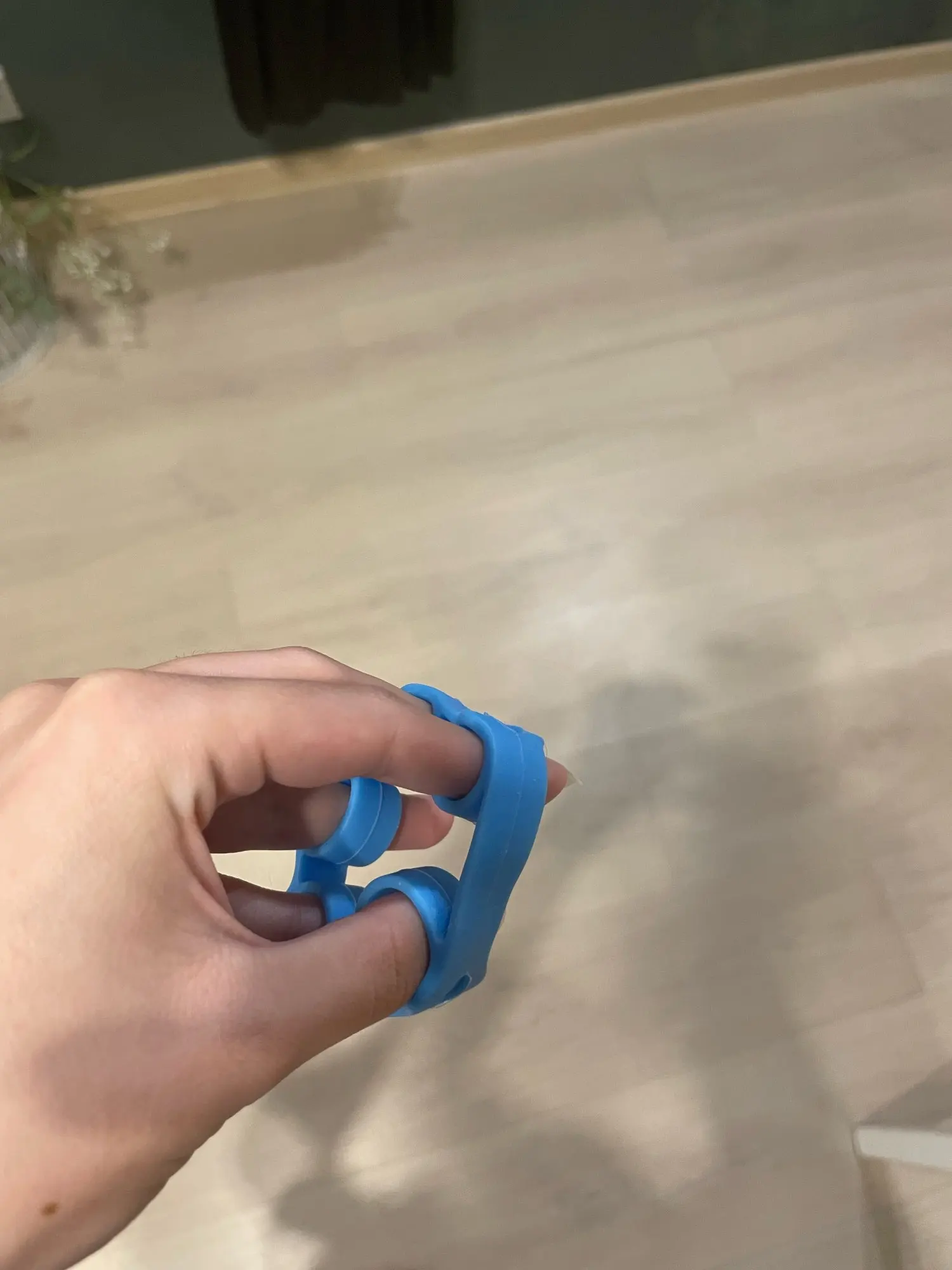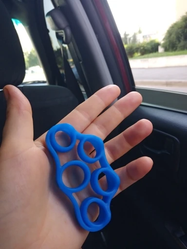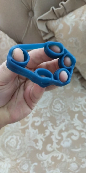 Сегодня получила этот мини-эспандер для пальцев. Что касается меня, то я и выпрямить вдетые в него пальцы не смогла, посмотрим что скажет внук, для которого это было приобретено.