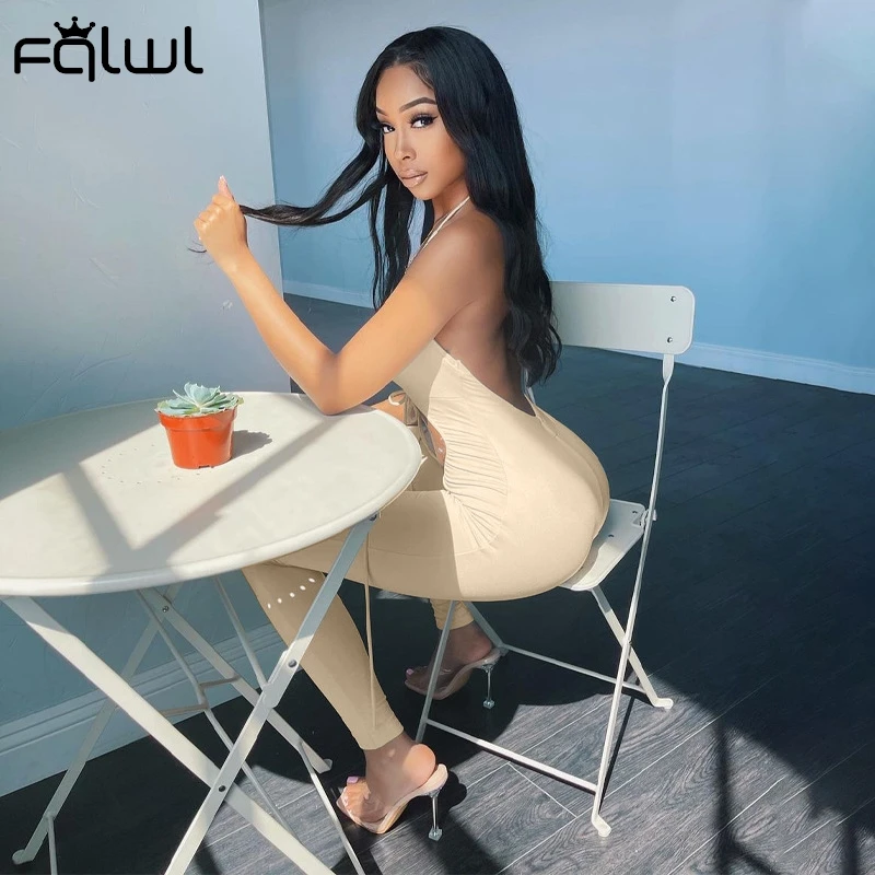 FQLWL уличная одежда, бандажный Цельный Наряд, женский комбинезон, женский летний 2021 сексуальный Облегающий комбинезон с открытой спиной и лямкой на шее