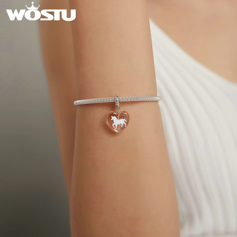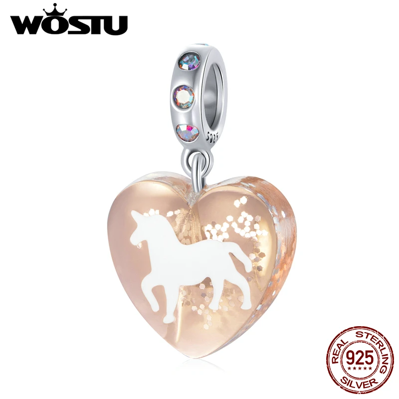 WOSTU 925 стерлингового серебра Подвеска В Форме Сердца пони кулон из бисера, подходят к оригинальному браслету, ожерелье, сделай сам, ювелирное изделие, подарок CQC1886
