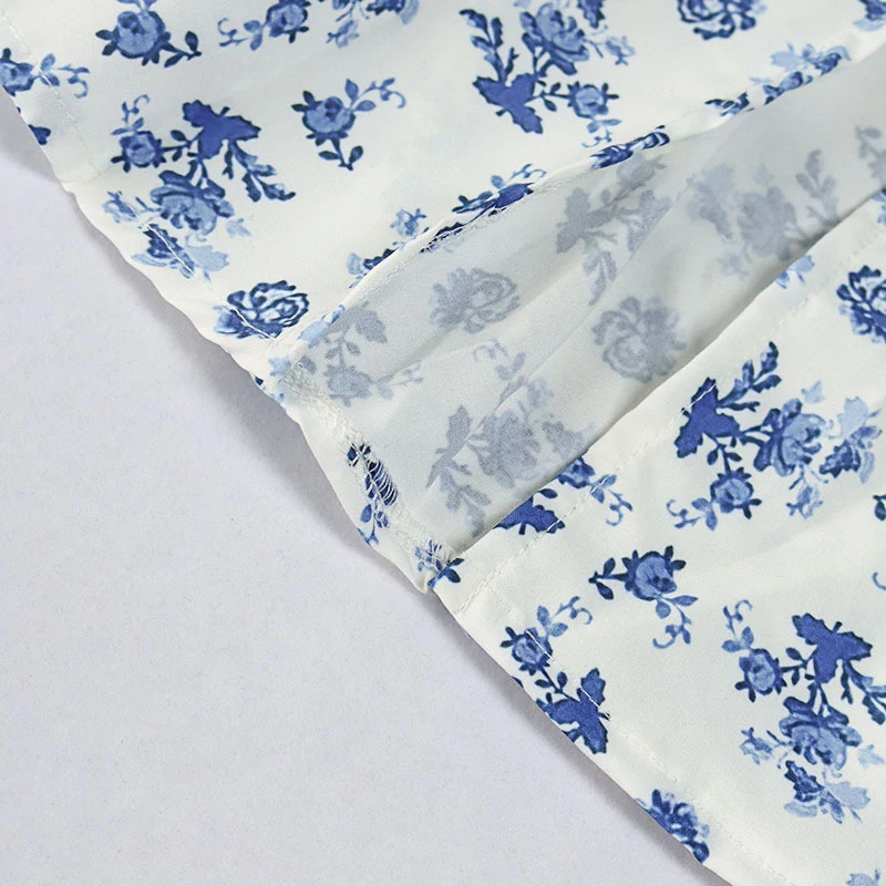 Летнее платье с пышными рукавами и цветочным принтом, элегантное соблазнительное платье миди y2k, приталенное Повседневное платье с высоким разрезом и кулиской для женщин