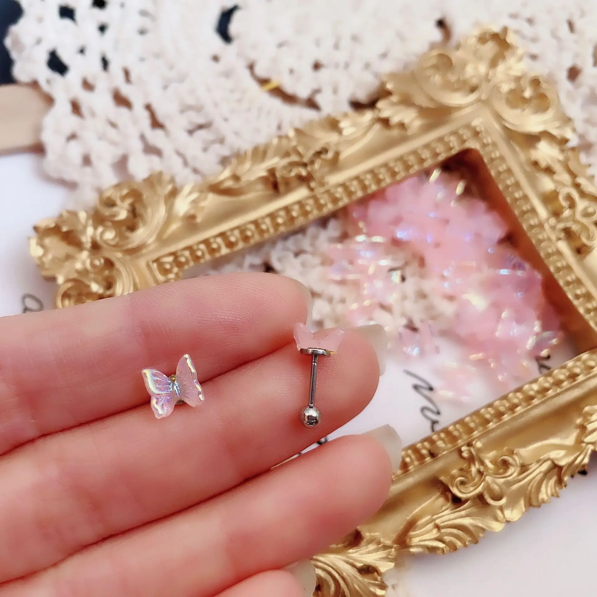 Спецификация: Название продукта: Разноцветные серьги-гвоздики из титановой стали с бабочкой Авроры