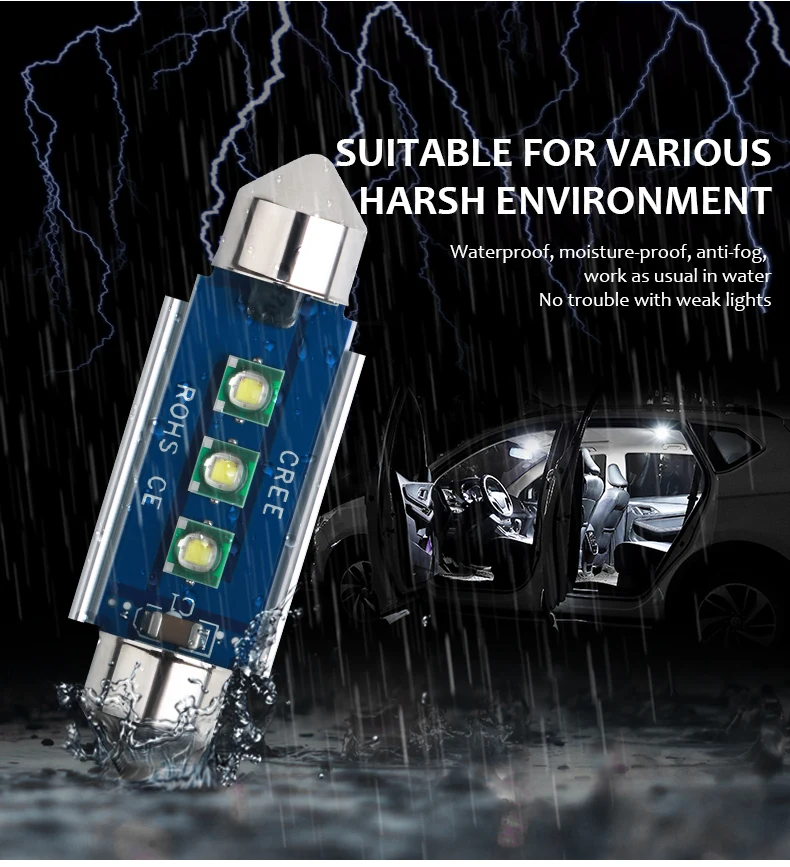 2 шт. высокая яркость светодиодные гирлянды лампы для автомобиля 31 36 39 41 мм Canbus без ошибок авто Интерьер Купол огни 3 Вт дверные фонари 12 В Белый Cree лампа шарик