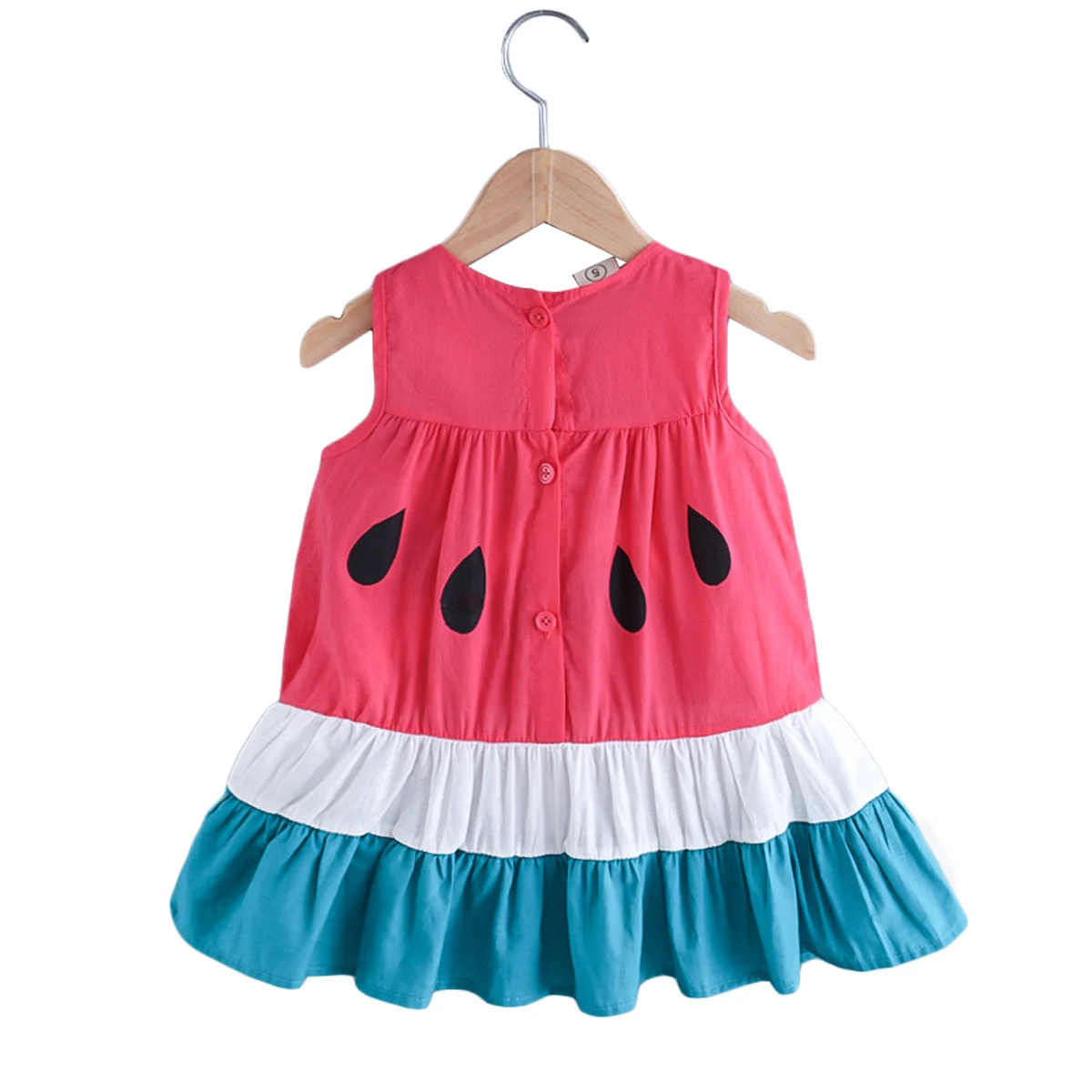 Платье Lioraitiin для девочек 2-6 лет, платье с высокой талией, круглым вырезом, принтом арбуза, пуговицами и оборками