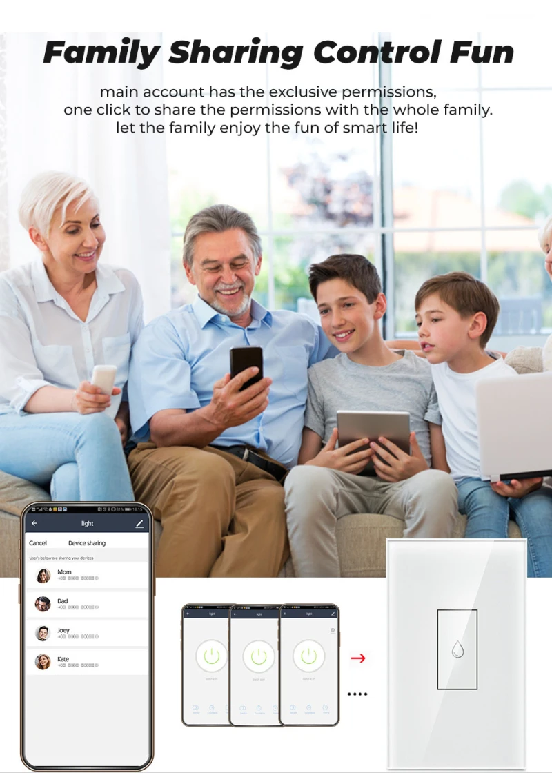 【Поддержка голосового управления динамиком】Коммутатор совместим с Alexa и Google Home Assistant, что позволяет использовать Голосовое управление smart switch для включения/выключения.