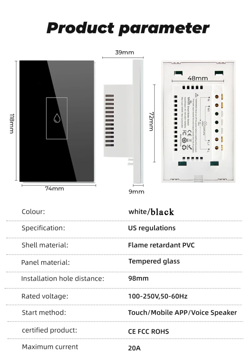 Умный водонагреватель с сенсорным управлением и управлением через приложение, 20 А