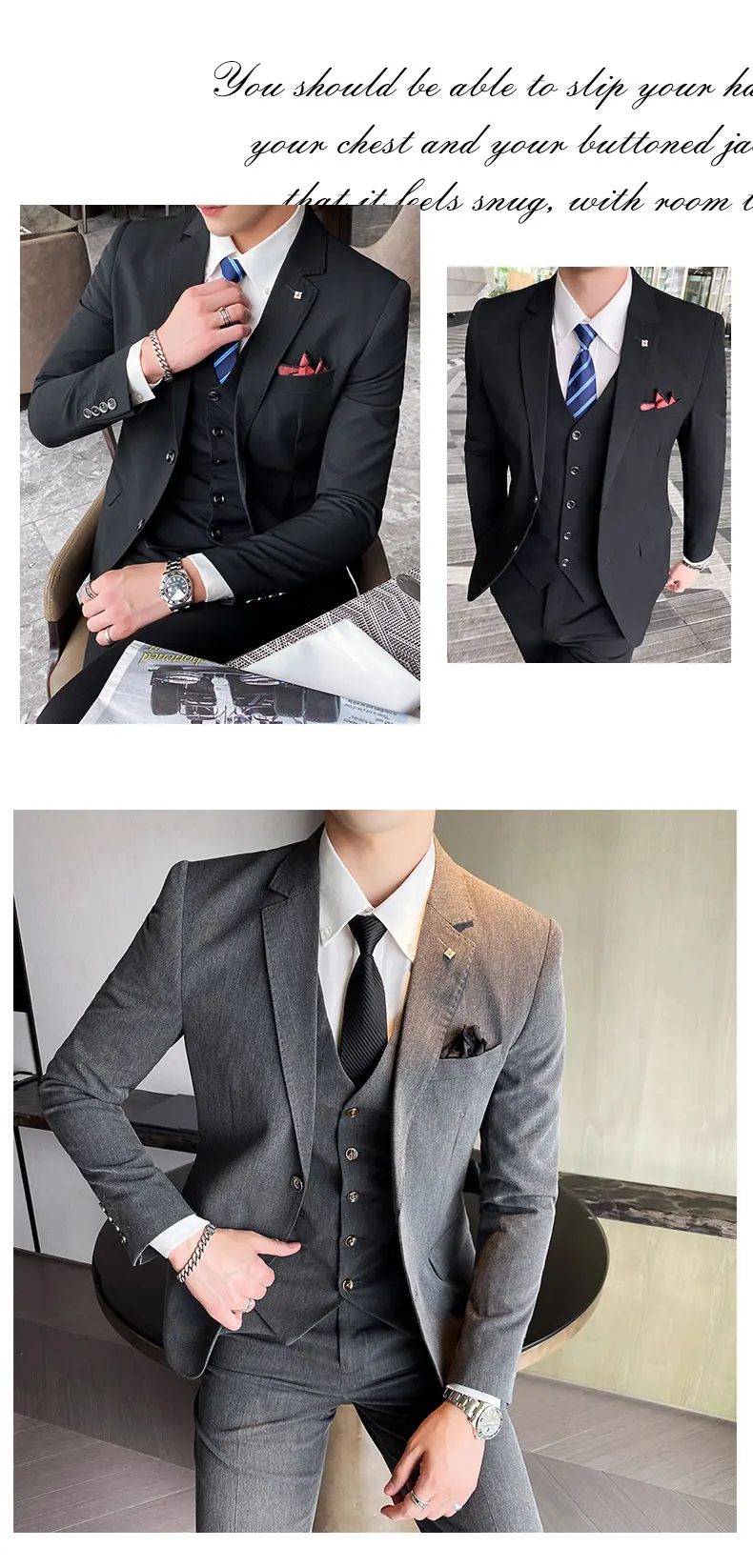 3 шт.комплект (пиджак + жилет + брюки) 2019 новейший мужской повсед...