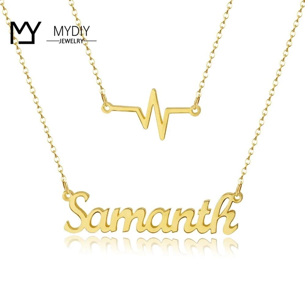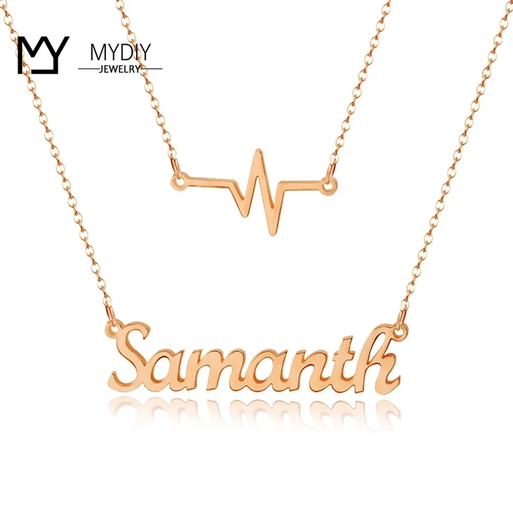 Изготовленный На Заказ Heart Beat название Слои ожерелье для женщин Персонализированные золото 925 стерлингового серебра можно украсить ювелирными изделиями свадебный подарок на день рождения