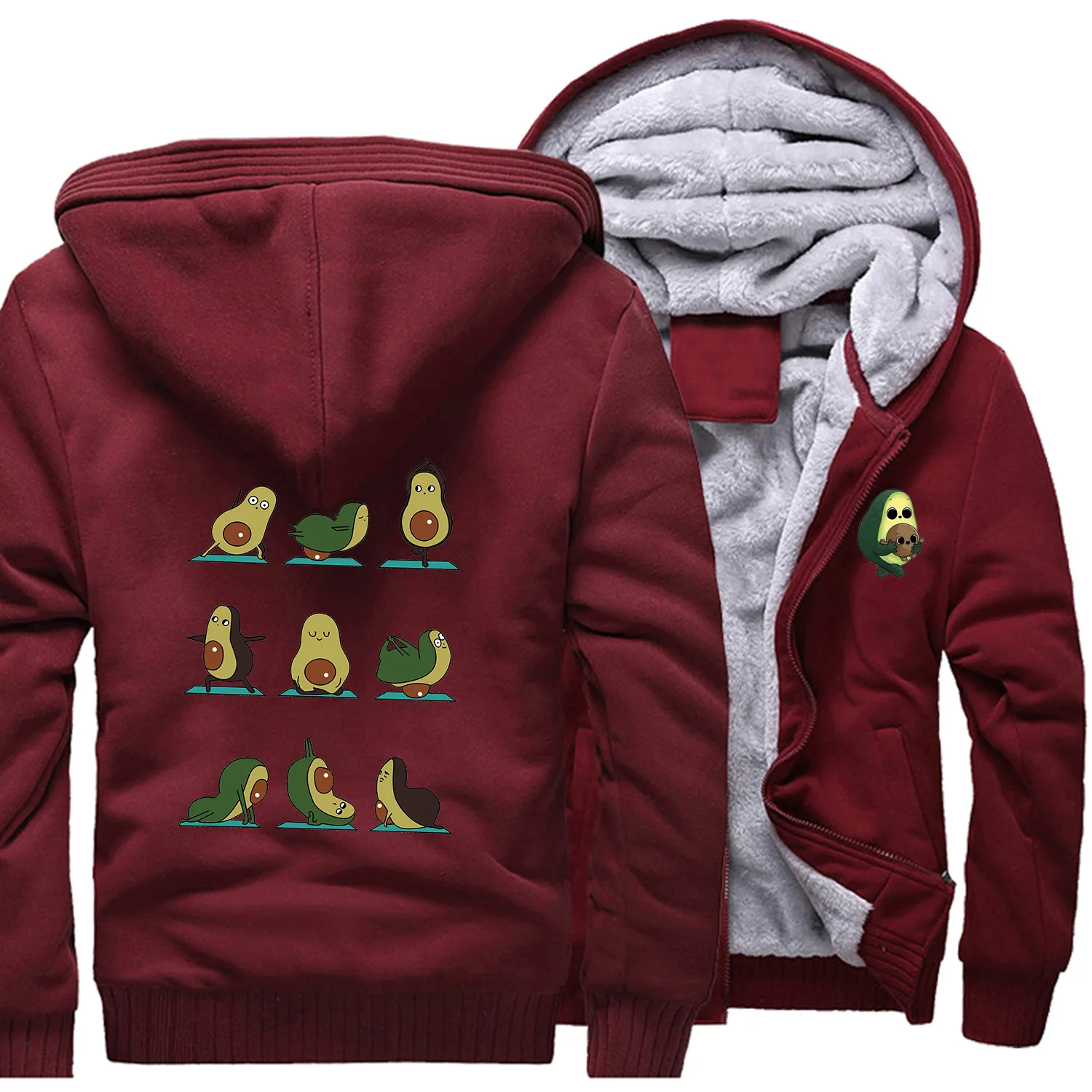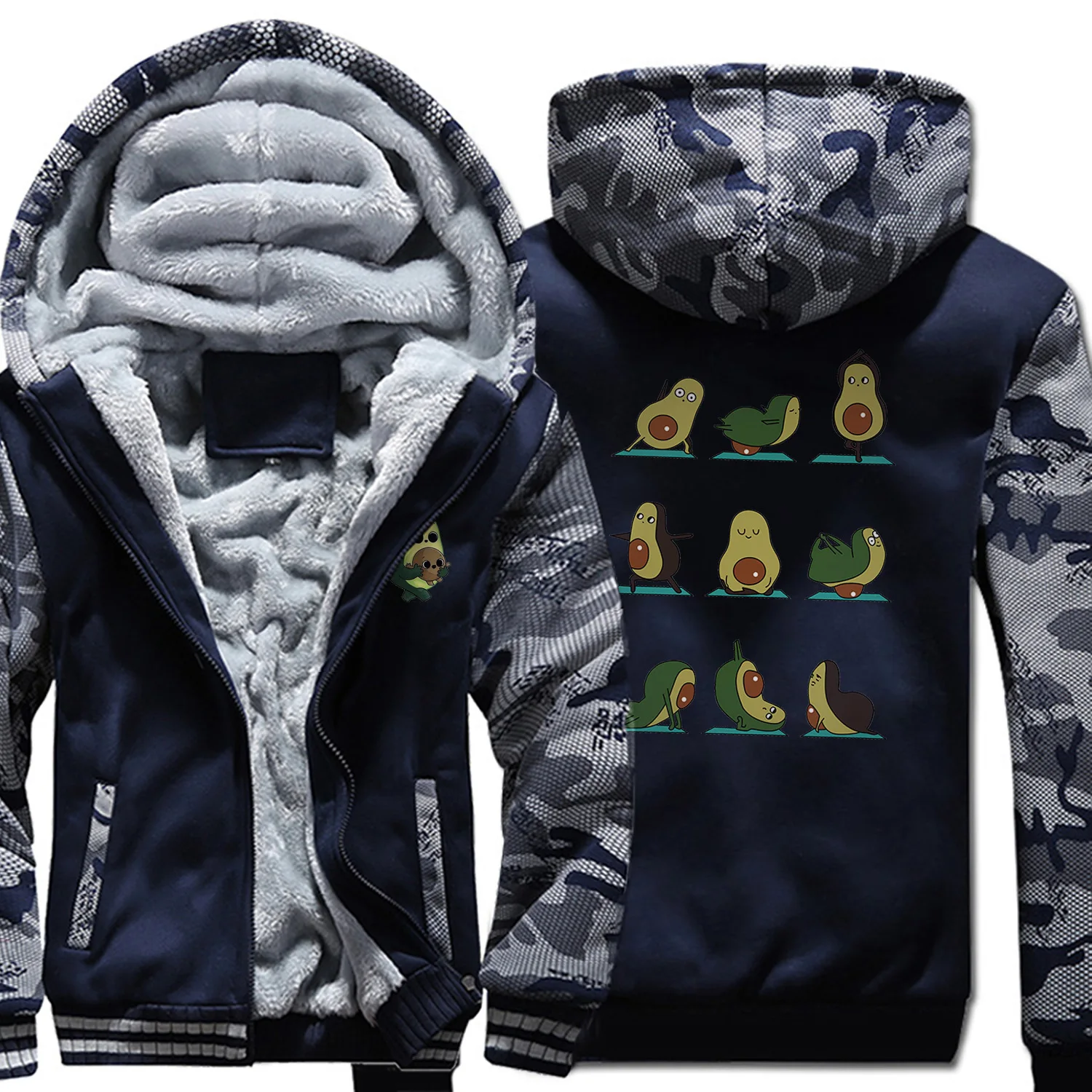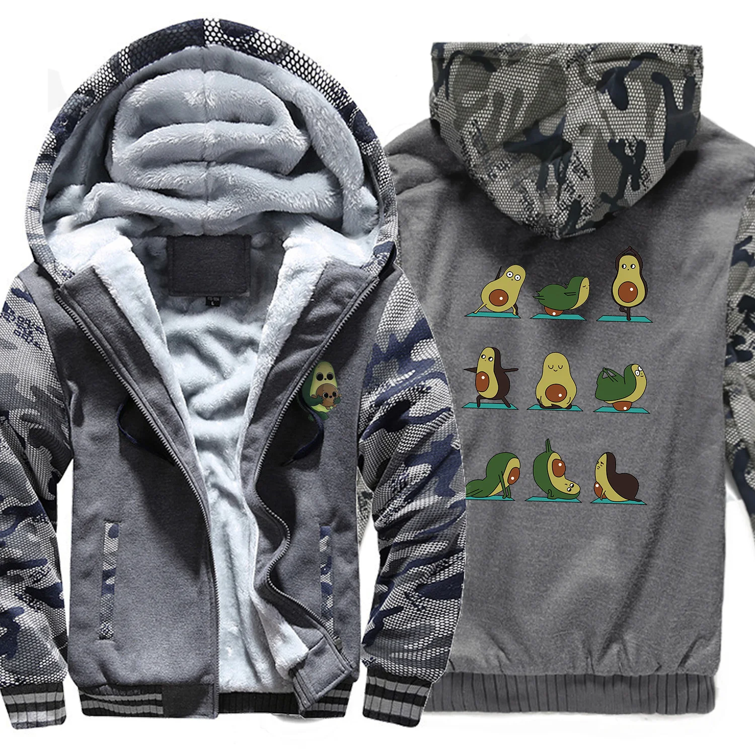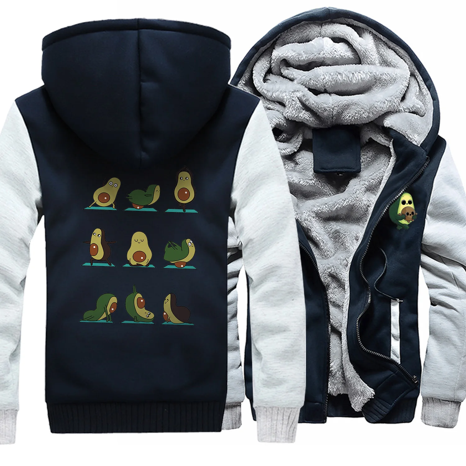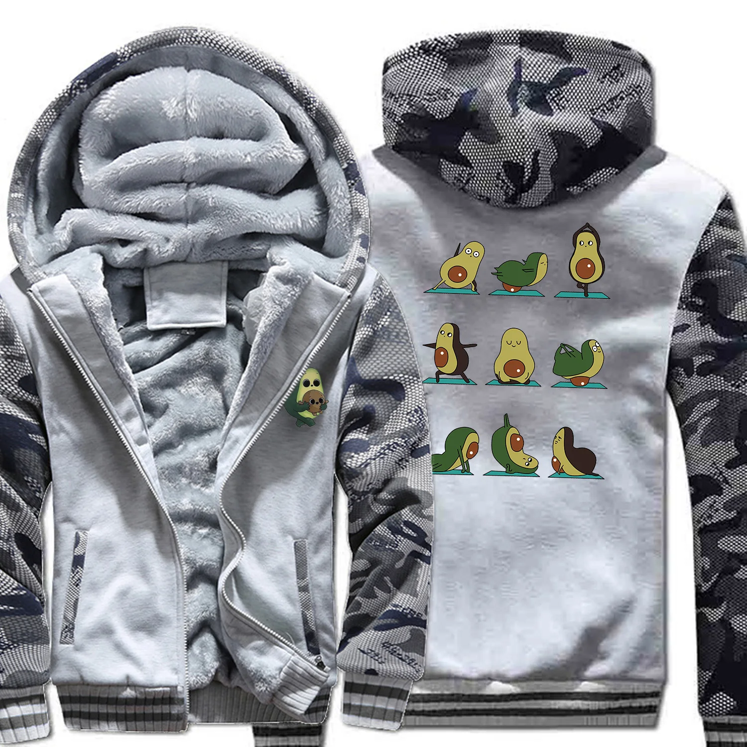 Толстовка мужская флисовая с капюшоном, модная уличная одежда с аниме принтом авокадо, смешная куртка оверсайз с капюшоном, на молнии, Осень-зима