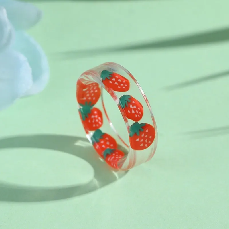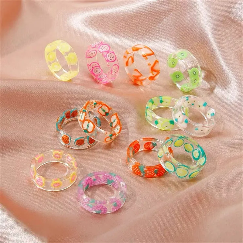 2021 новый прозрачный смолы кольца для женщин и девочек цветной клубникой лимон кольца новый дизайн вечерние Ювелирные изделия Подарки