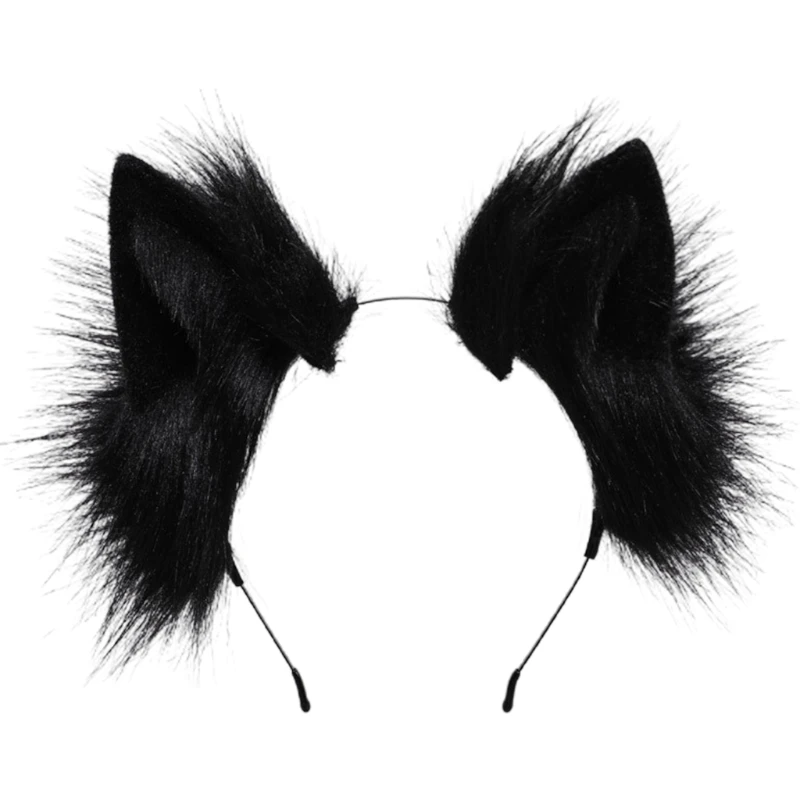 Ободок с кошачьими ушками из искусственного меха, однотонный Пушистый Плюшевый ободок для волос в виде животного для косплея