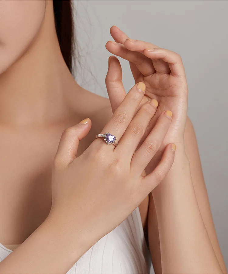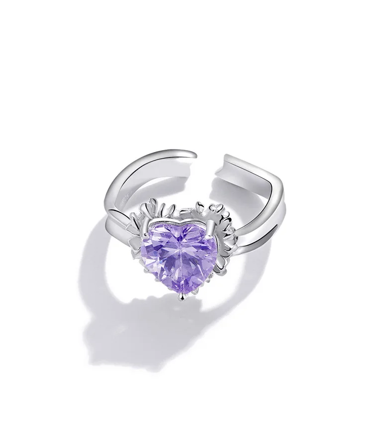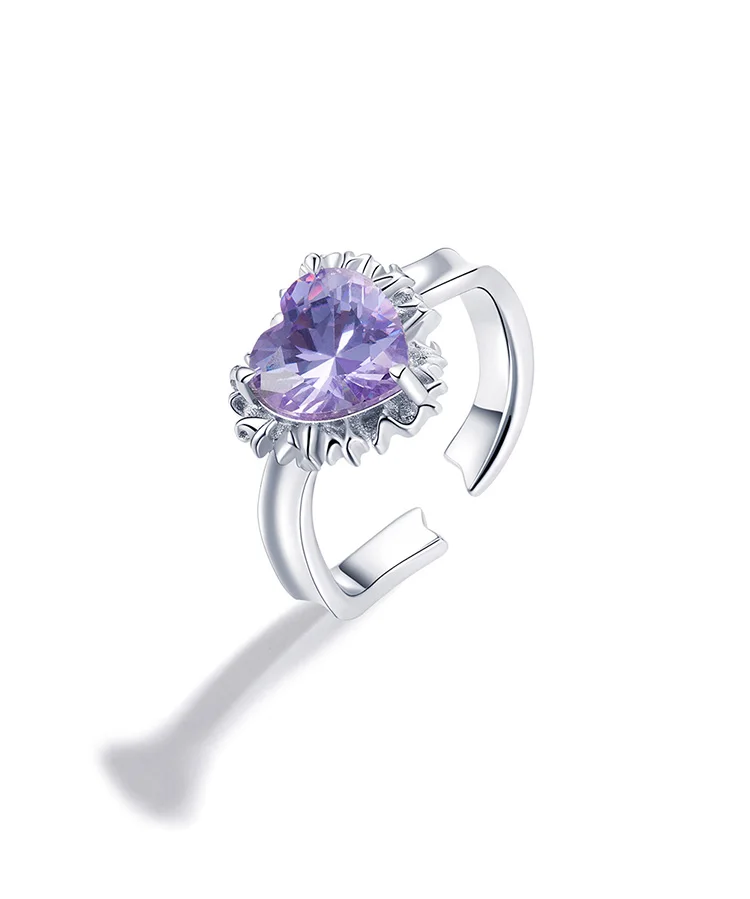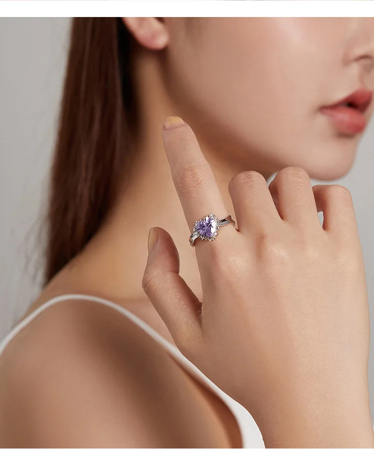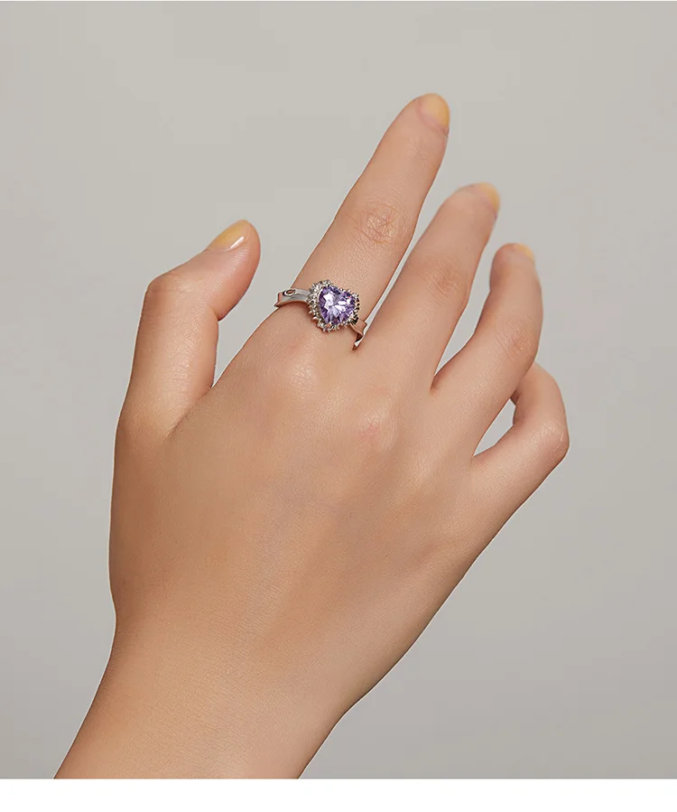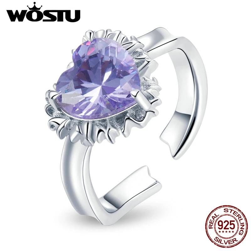 WOSTU 925 пробы серебро Подростковая Романтика кольцо блестящие Пурпурное сердце циркон открытый палец кольцо для Для женщин Серебряные ювелирные изделия CTR190