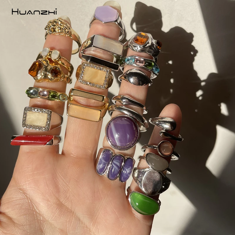 HUANZHI 2021 стиль; Новинка; В стиле ретро; В 5 шт.компл. красочный камень Стразы Кольца из золотистого металла с двойным остеклением кольцо для женщин комплект кольцо вечерние ювелирные изделия