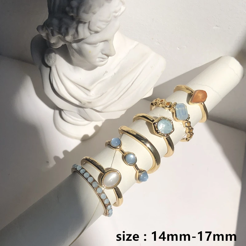 Женские кольца с разноцветными камнями, 8 шт.компл., винтажные, лет...